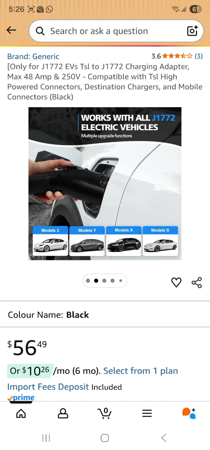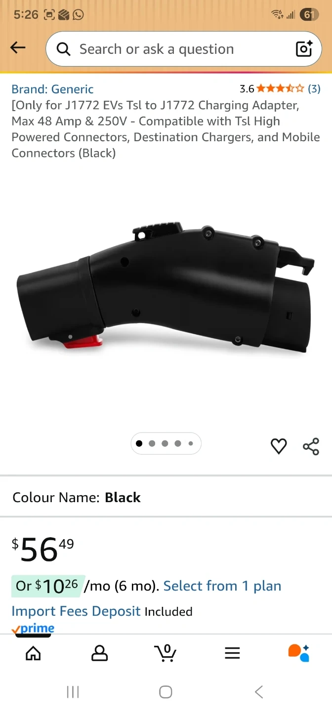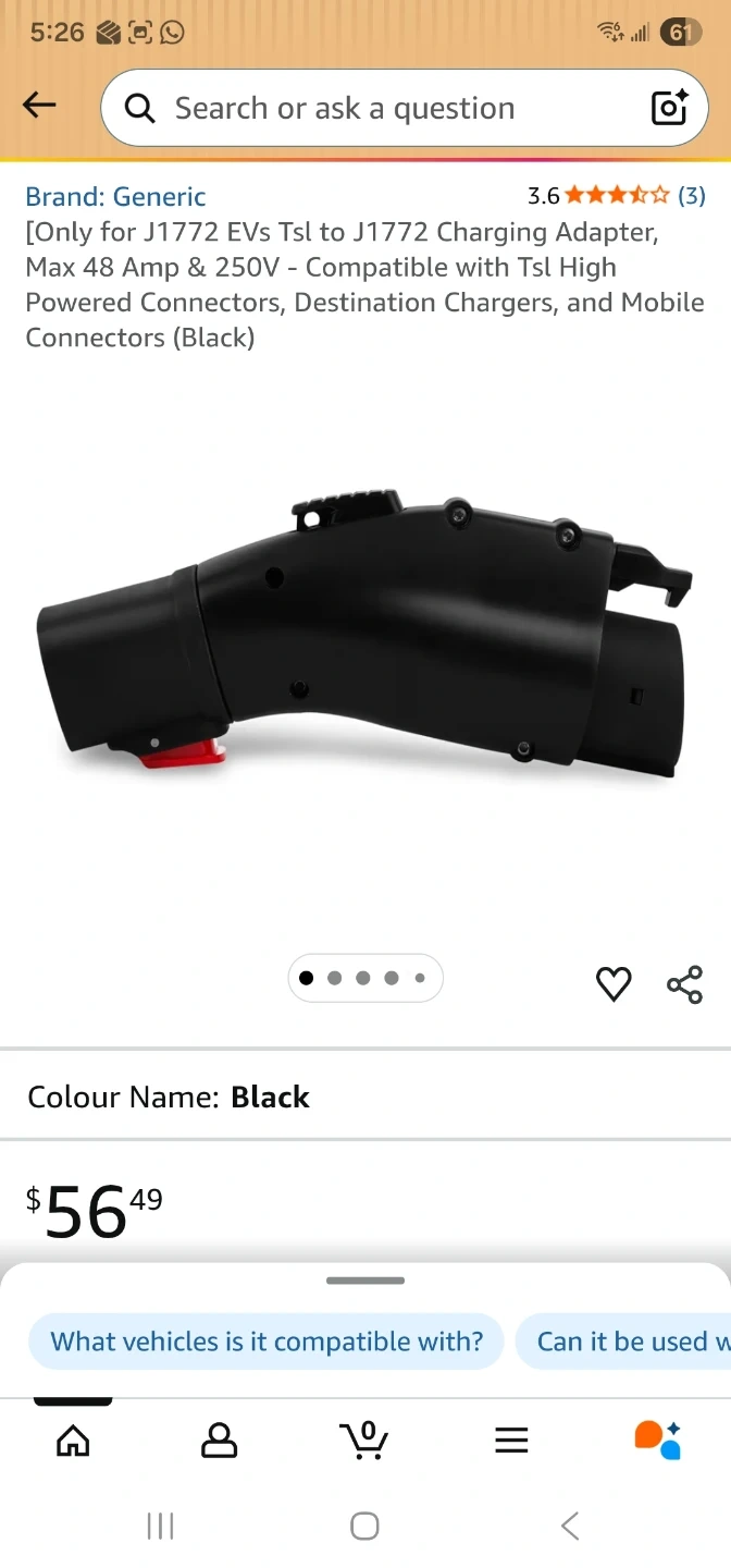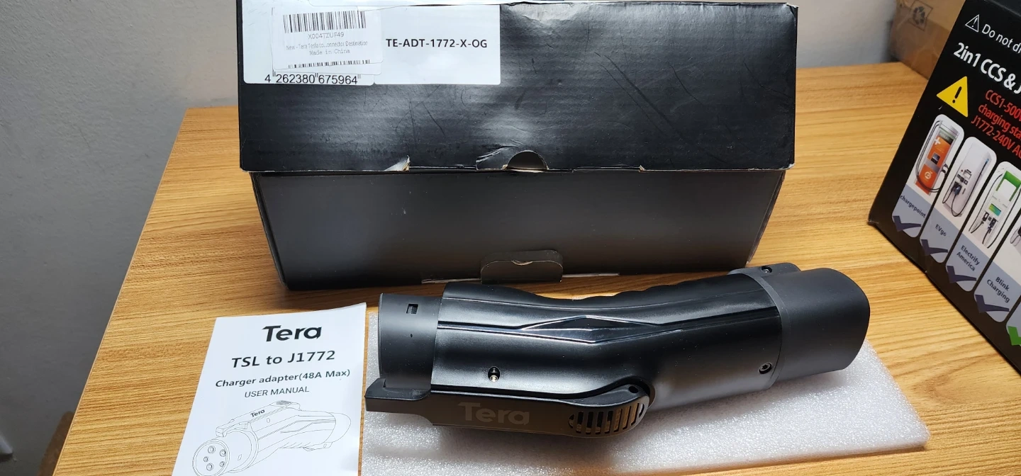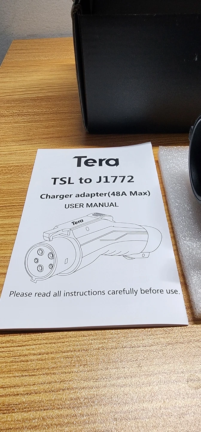 This is a Tera charger adapter that converts TSL to J1772. It's rated for a maximum of 48A. Includes the original box and user manual.