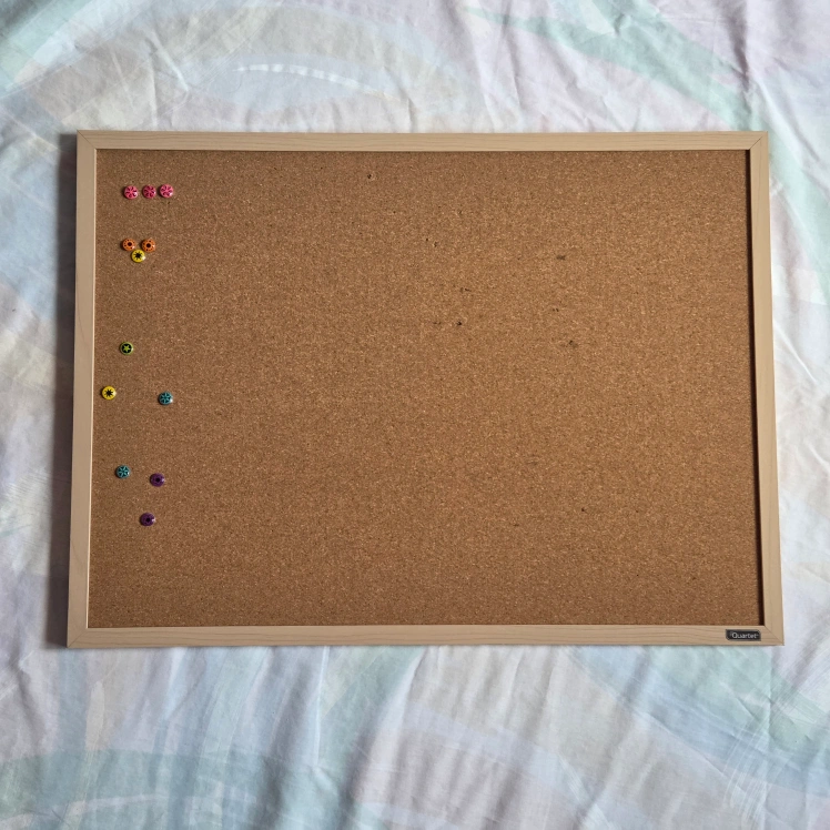 Selling a wooden frame cork board, perfect for pinning notes, photos, and reminders