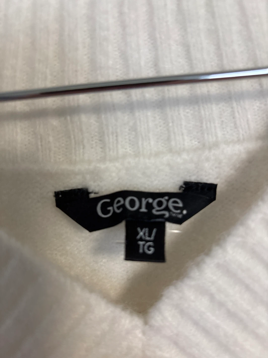 Cozy white V-neck sweater from George. It's a size XL/TG. Made with a soft, fuzzy knit material. Brand New never worn. Bought has gift cannot return. Purchased for 24.98 plus tax.