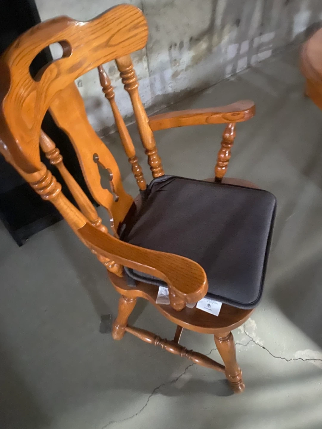 This is a solid oak dining table and six chairs. The chairs have cushioned seats. The table extends for more space. It's a classic set for family dinners!