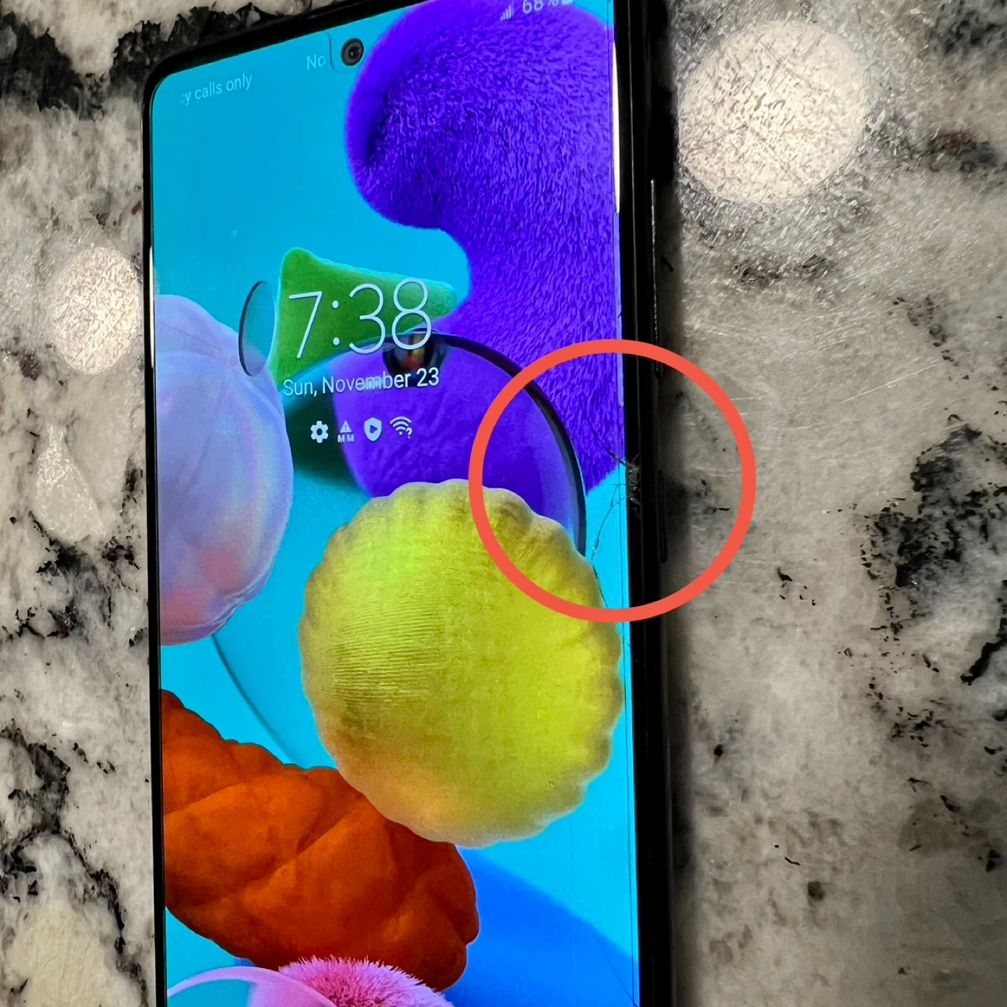 There's a small crack on the right side as shown in the picture but does not affect the function of the phone at all.