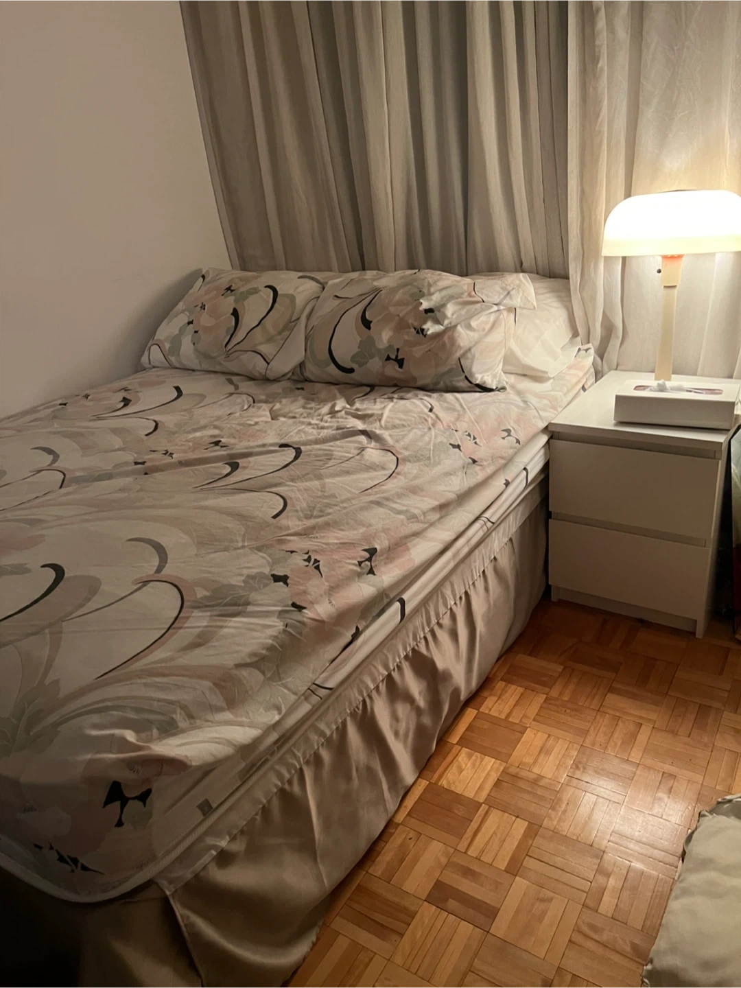 Selling a white IKEA MALM nightstand with two drawers. It's in great condition and perfect for adding some extra storage next to your bed. The clean design fits well with any decor!