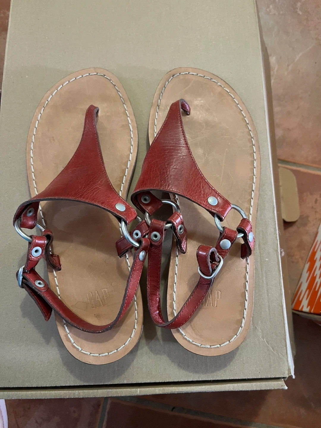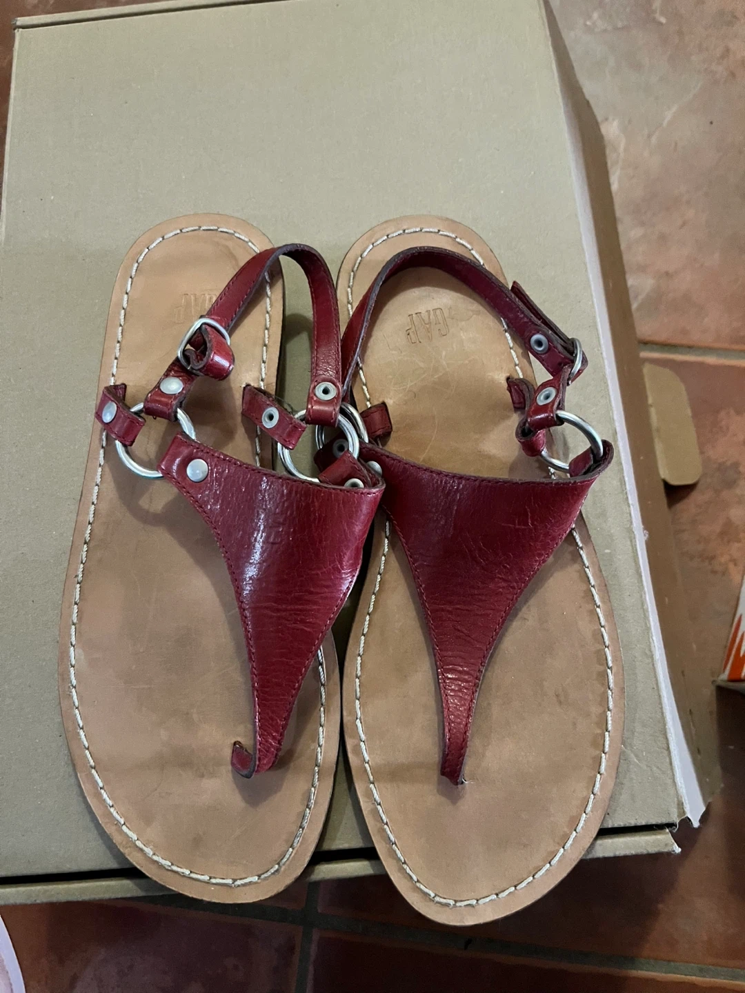 Red Leather Thong Sandals