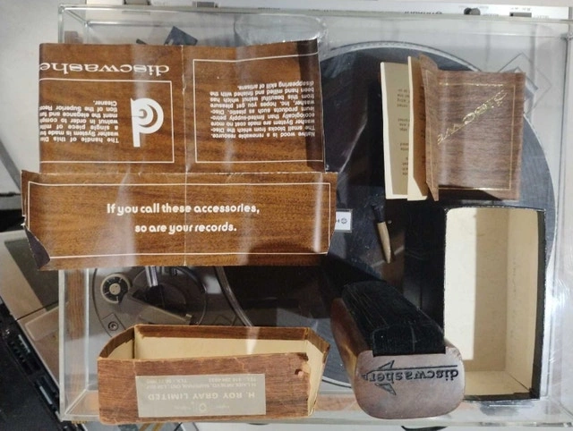 Hitachi HT-354 direct drive turntable with a stereo stand, and a Discwasher record & stylus brush. The system sounds great overall,except the turntable didn't sound good; it needed a new stylus. Since originally posting the add, I have installed a NEW CARTRIDGE & NEW STYLUS (no extra charge)which seems to have resolved the distortion issue that the turntable previously had.