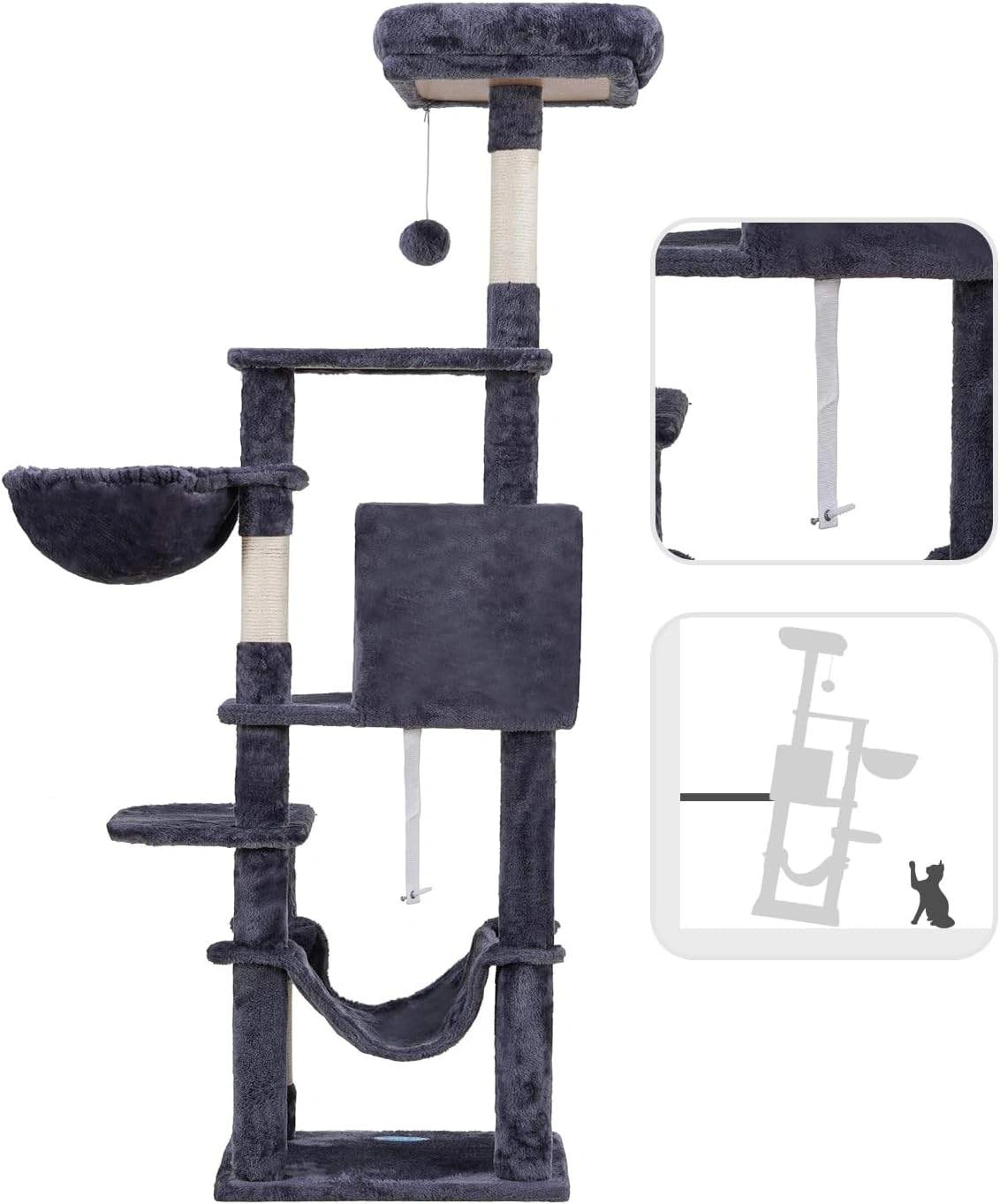 This multi-level cat tree is perfect for your feline friends! It features several platforms, a cozy condo, and a hammock for lounging. Your cats will love climbing, scratching, and playing on this tree. It measures 60.6 inches in height, providing ample space for your cats to explore and enjoy.