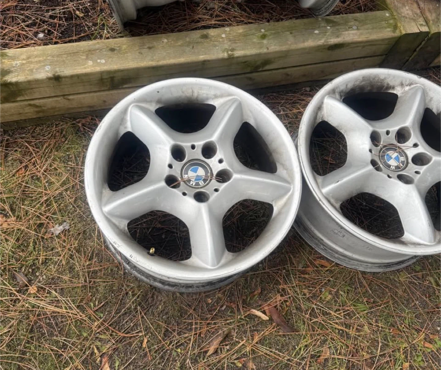 used BMW rims Silver finish.These are original BMW rims.straight and solid normal wear from use (no major damage)great replacement or winter setup 5X120 ratio