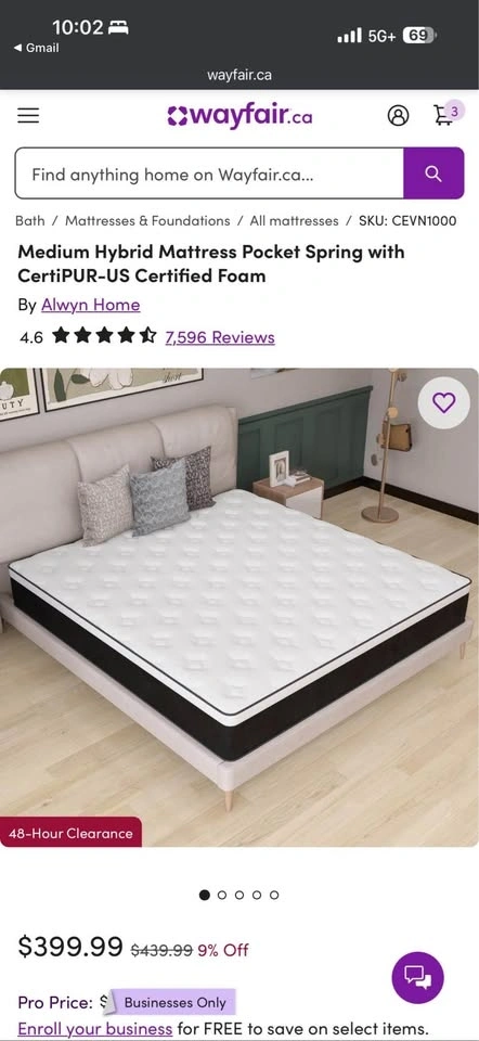Lightly used mattress, only 2 months old. Originally purchased for $399 plus tax. Moving soon and need it gone ASAP. Pickup is available near Deer Lake Park in Burnaby. I cannot deliver, so please plan to pick it up.