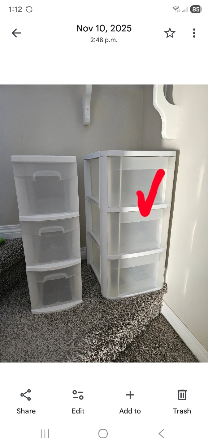 This is a clear plastic Sterilite three-drawer storage unit. It's great for organizing small items in any room. The drawers slide smoothly for easy access.