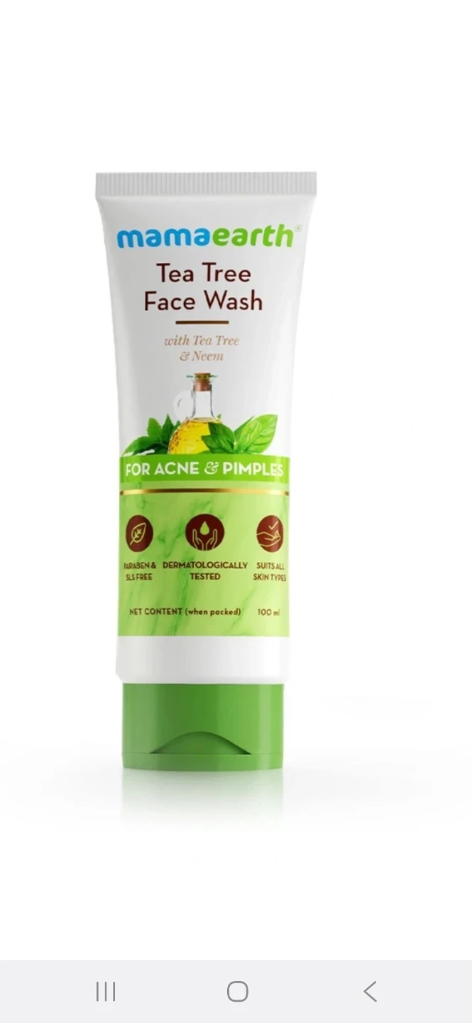 Mamaearth Tea Tree Face Wash. It's formulated with Tea Tree & Neem. It's paraben and SLS free and dermatologically tested. This face wash is suitable for all skin types.