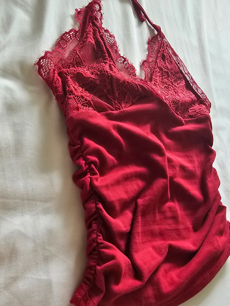 A cute red halter top with lace detailing! It's in great condition and would be a lovely addition to any wardrobe
