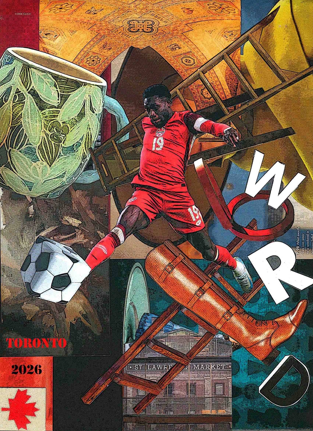 These are original collages using images meticulously cut out from a multitude of magazines, then placed on the bed of a digital scanner. All images are 100% original. The process of creating these works is very labor intensive with each one taking approximately 12 hours to complete. They come signed, matted & sleeved. Why not own one of these World Cup 2026 originals today?