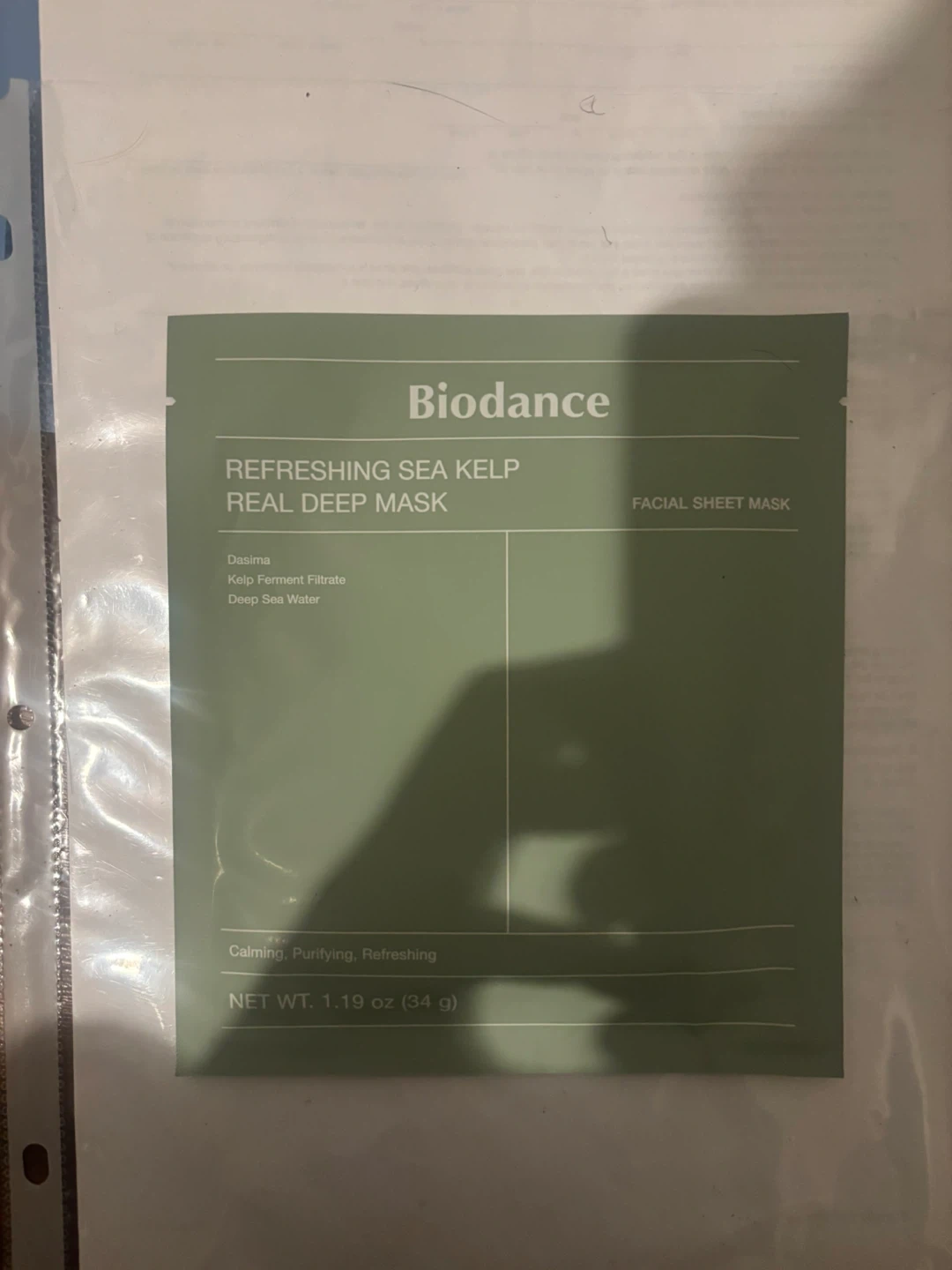 This listing includes three Biodance Real Deep facial sheet masks: Bio Collagen, Hydro Cera-Nol, and Refreshing Sea Kelp. Each mask is 1.19 oz (34 g). They're designed for hydration, pore perfecting, firming, soothing, moisturizing, nourishing, calming, purifying, and refreshing.