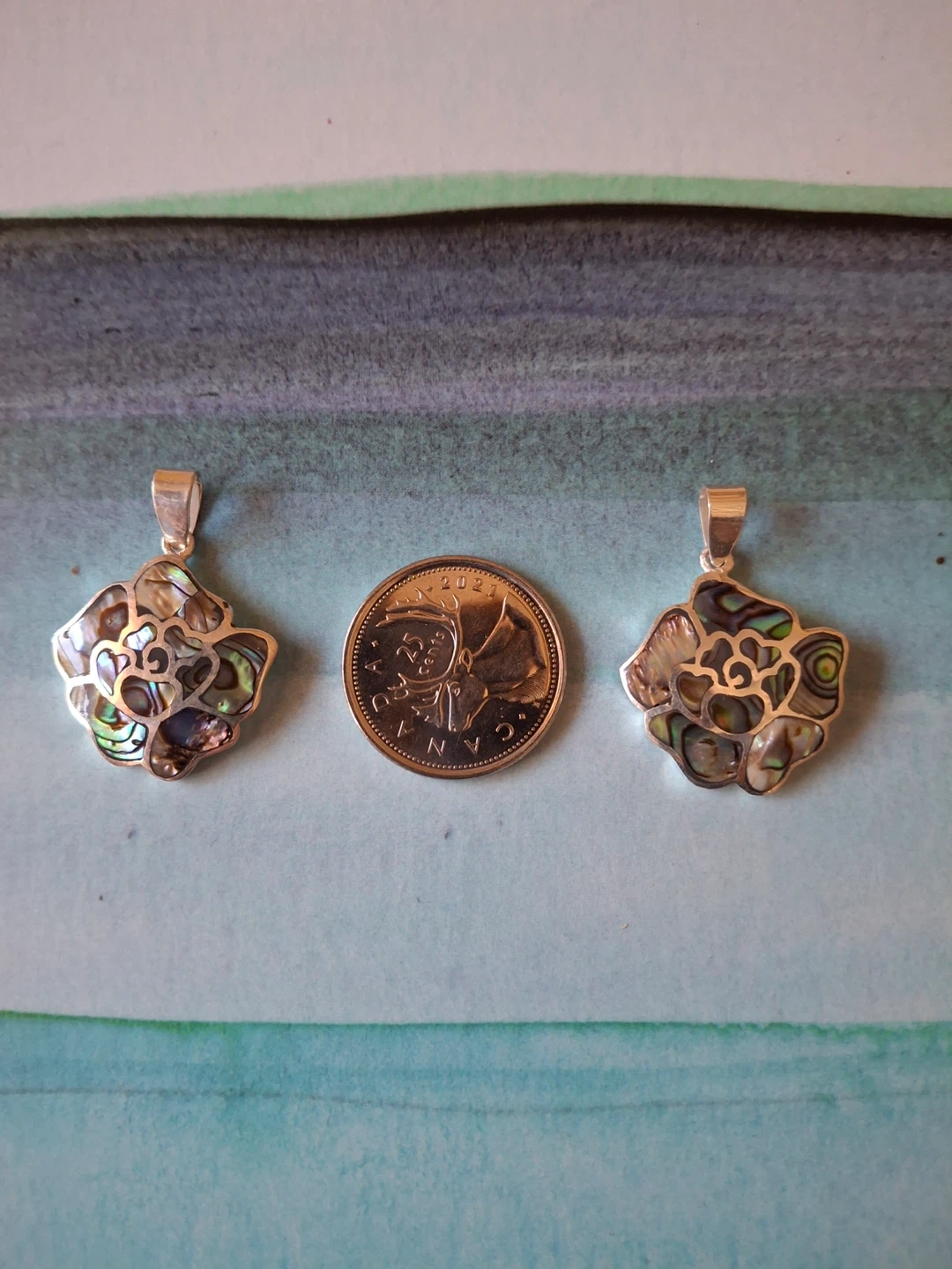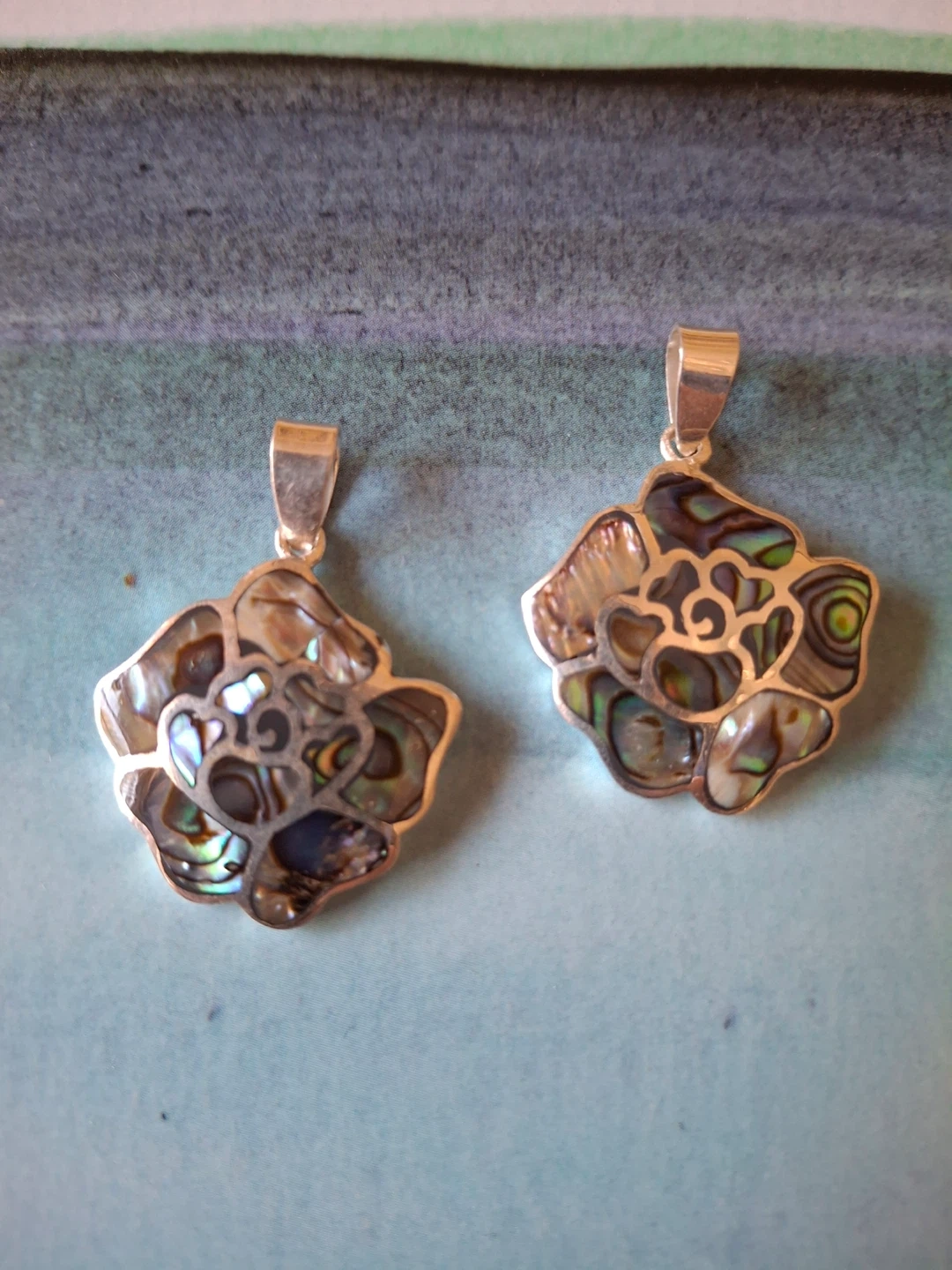 2 flower shaped abalone pendants available. Silver, stamped 925. $15 each Available for pickup in Markland Wood.