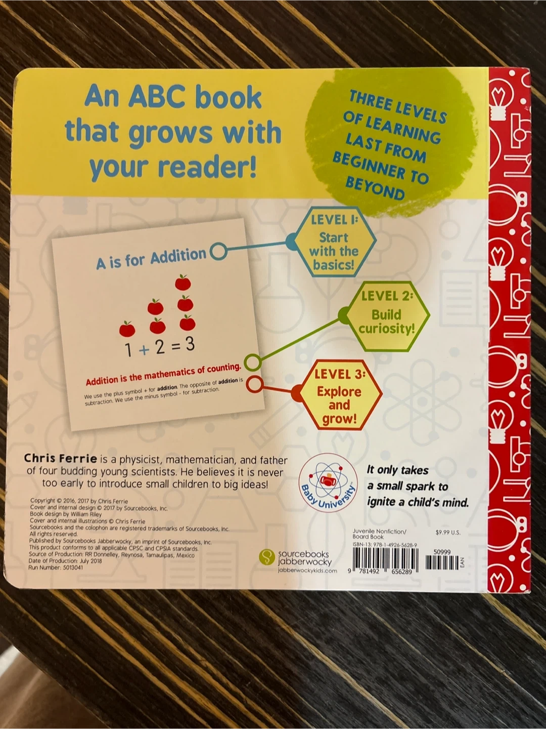 26Selling a gently used copy of ABC's of Mathematics by Chris Ferrie! This board book is a great way to introduce young children to basic math concepts like addition, base, and chord. It's part of the Baby University series and is perfect for sparking a love of learning!