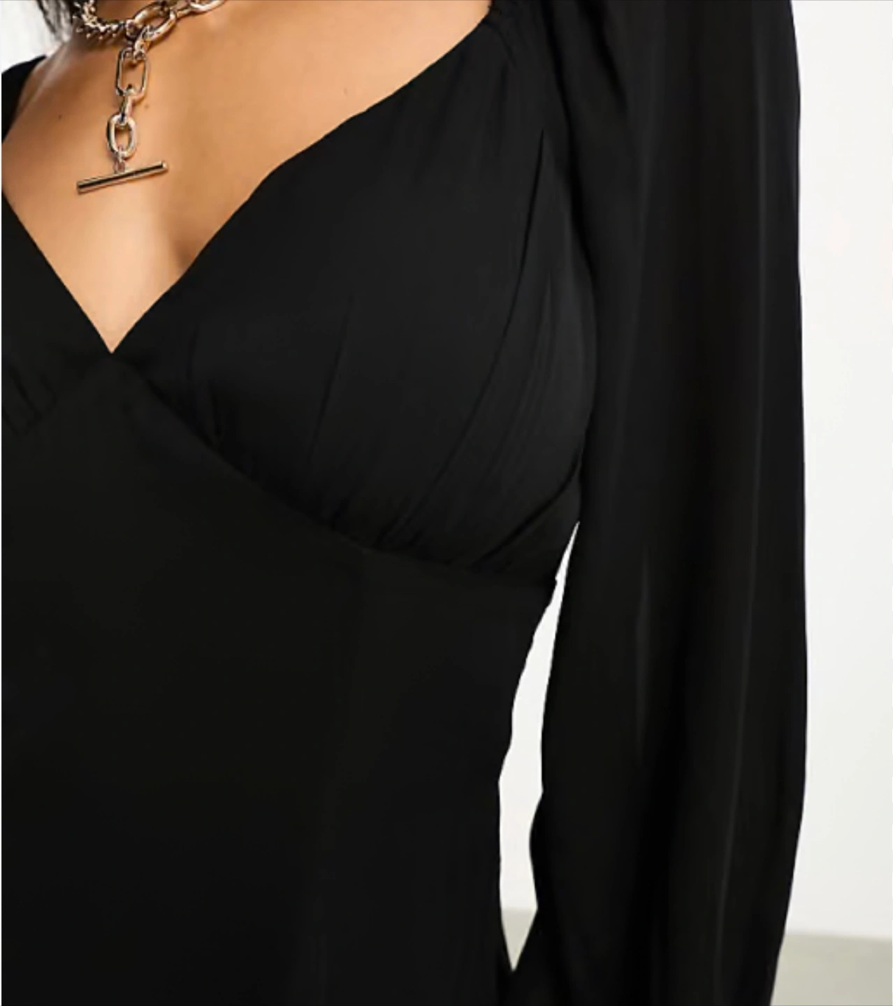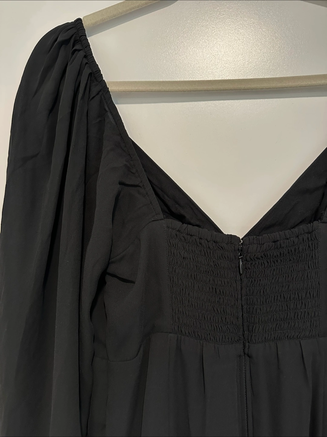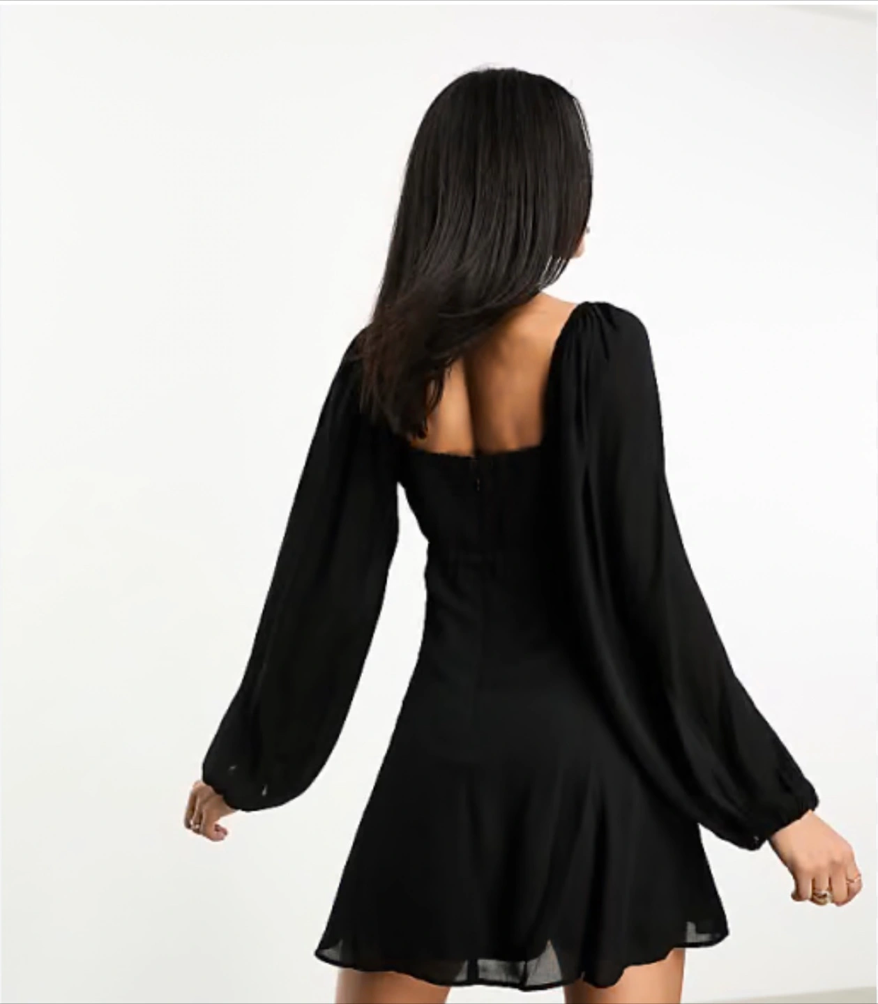 10Here's a cute Abercrombie black flowy V-neck mini dress! It has long sleeves and a flattering fit and flare shape. Perfect for a night out or a special occasion