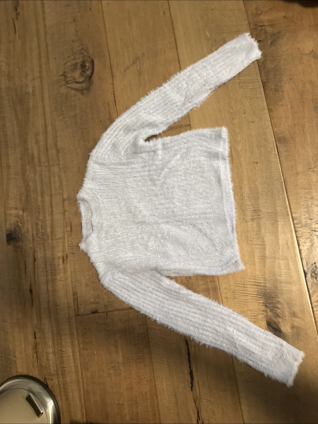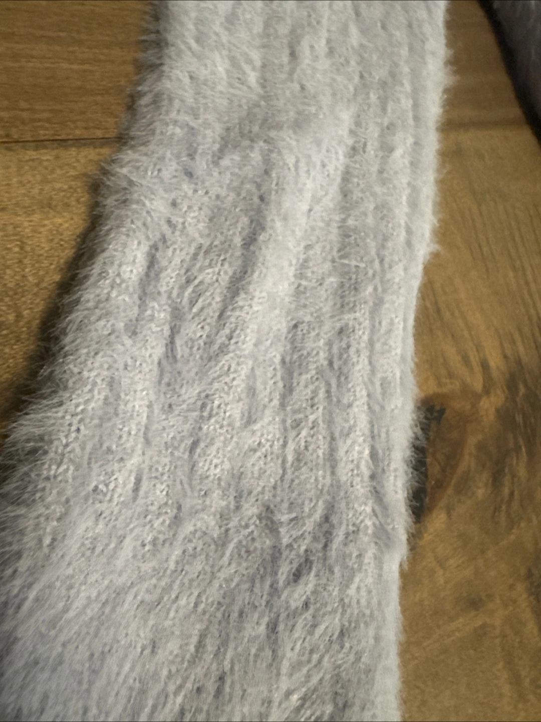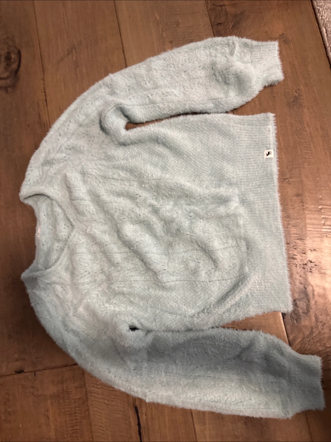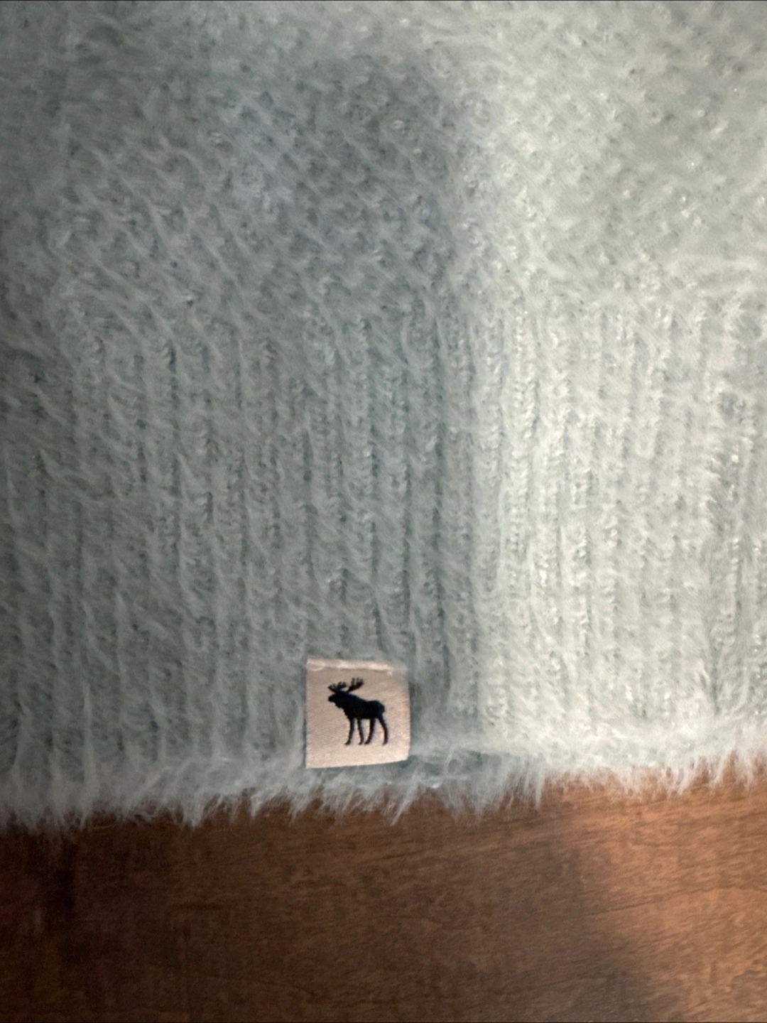 68Abercrombie & Fitch fuzzy light blue sweater. Long sleeves. Small brand tag. Cable knit pattern. For Children. Two sweaters.