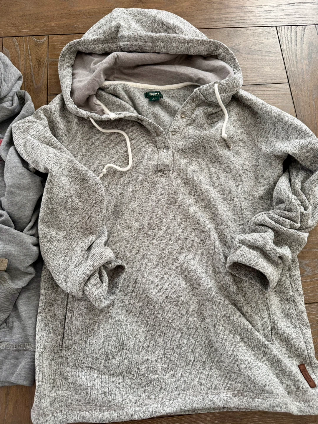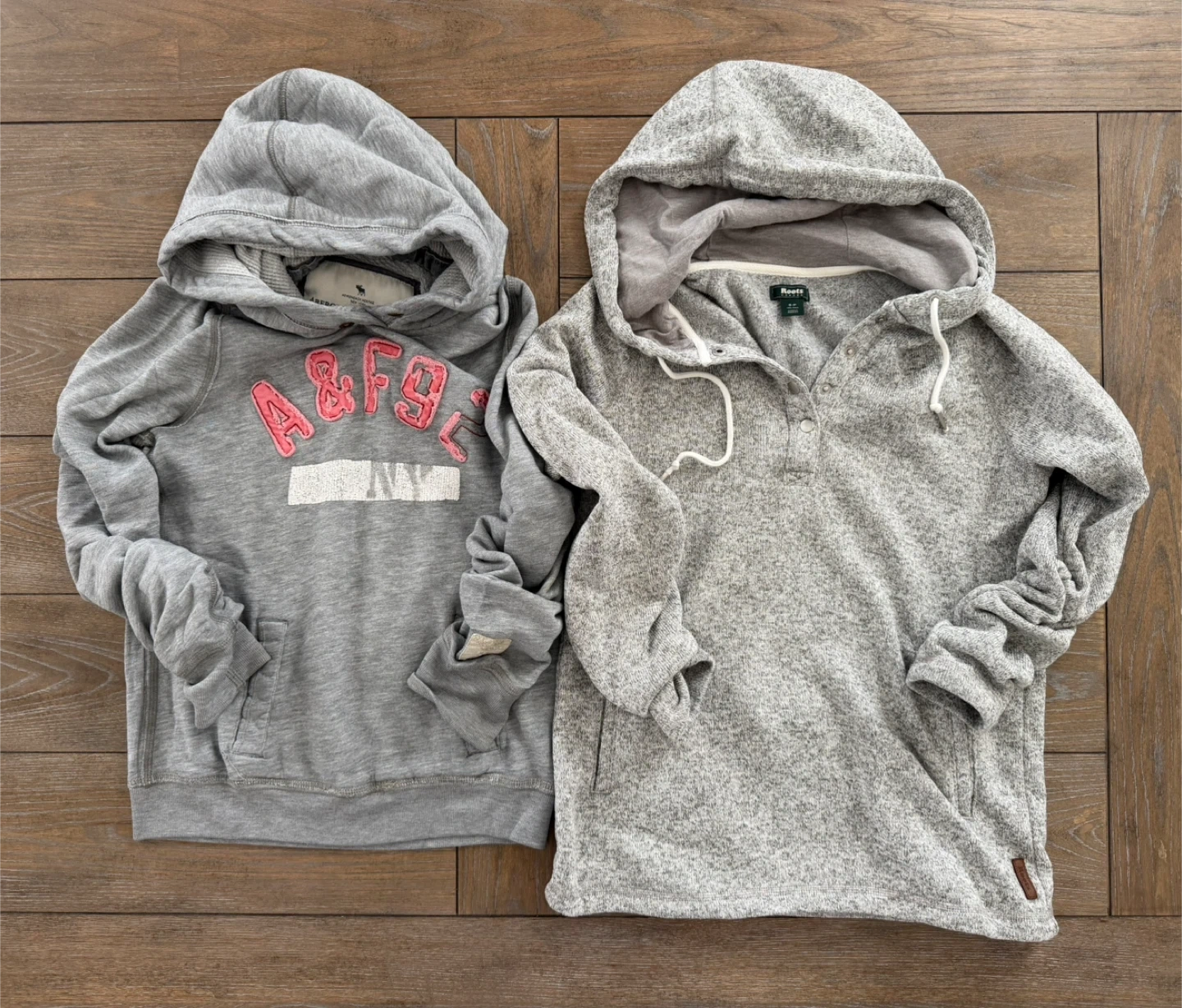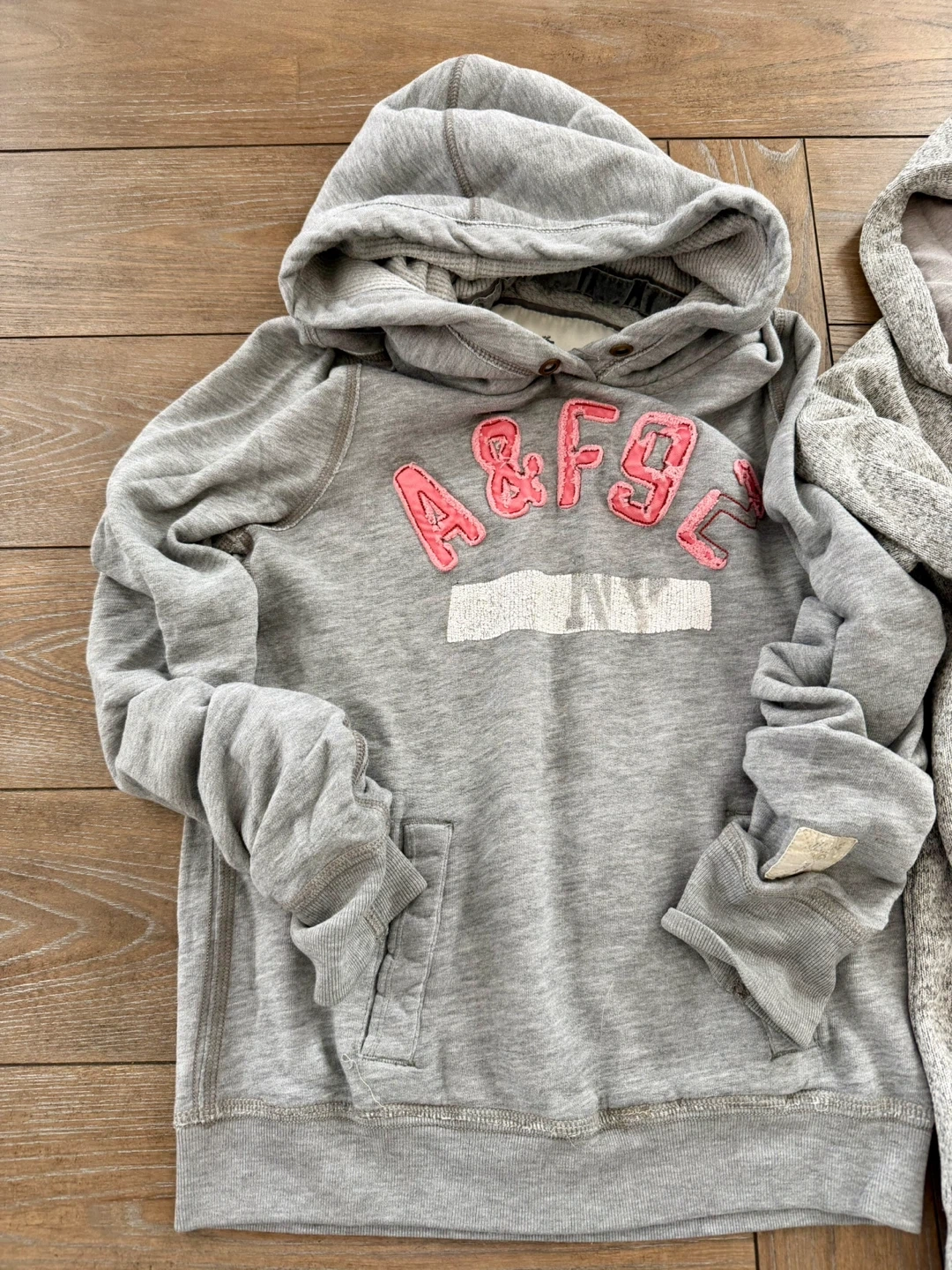 73Two grey hoodies for sale! One is an Abercrombie & Fitch hoodie in size medium. The other is a Roots hoodie in size small. Both are in good condition and ready for a new home Not for individual sale Entire Both sweaters are $10 for the bundle