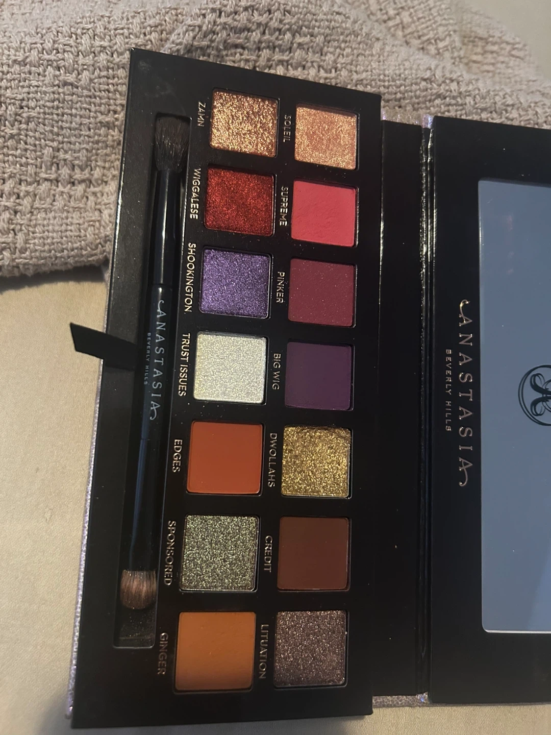 414Selling an Anastasia Beverly Hills Jackie Aina eyeshadow palette. It comes with a duo shadow brush. : The palette includes a versatile range of colors, from warm-toned neutrals and everyday shades like "Ginger" (matte caramel brown) and "Edges" (matte deep peach), to vibrant pops of color like "Supreme" (matte rosy pink), "Big Wig" (matte rich purple), and "Dwollahs" (metallic golden olive Cash only Pick up Mississauga