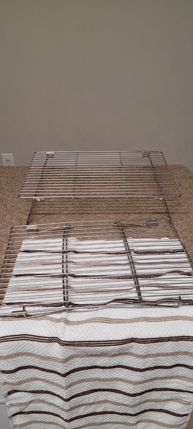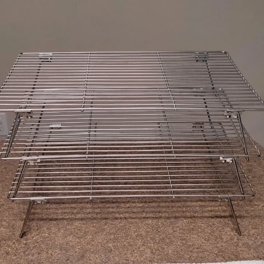 Selling a set of three stackable wire cooling racks. These are made of durable stainless steel and are perfect for baking or roasting. They're great for letting your baked goods cool evenly!