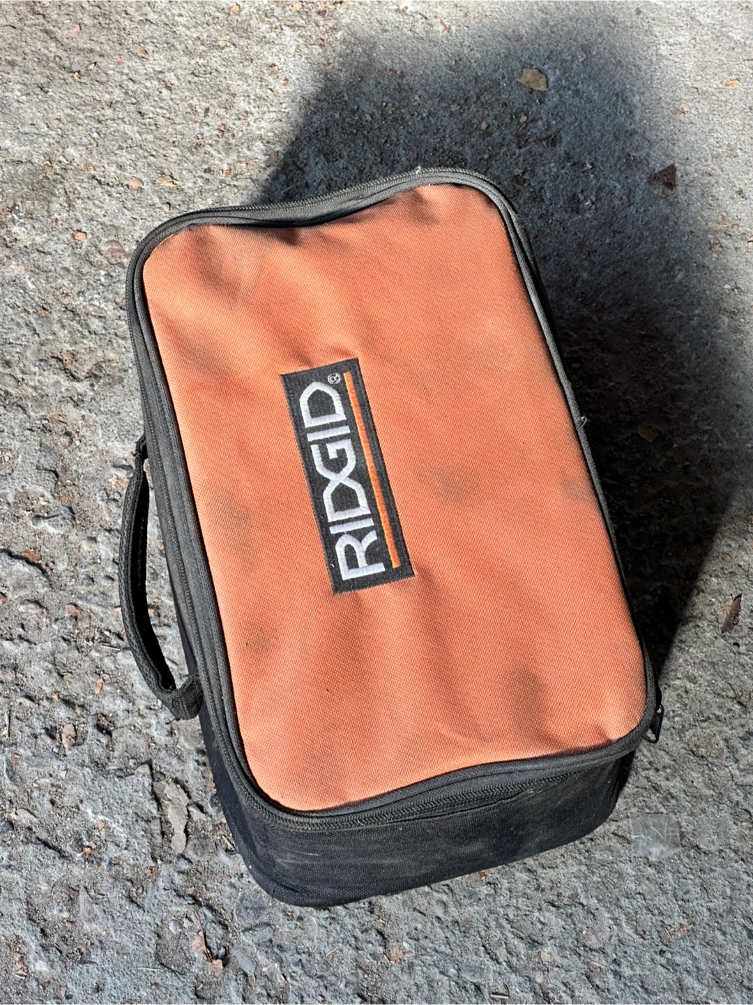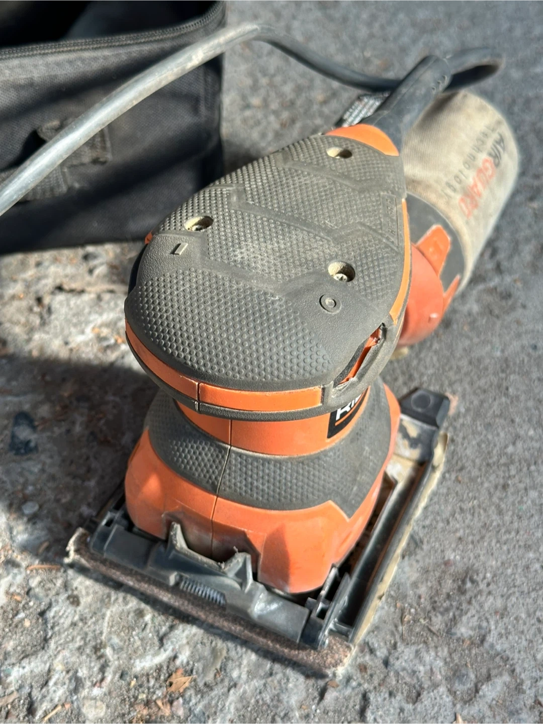 Power tool for sale! RIDGID random orbital sander for woodworking projects. Includes dust bag and carrying case. This tool's compact design makes it easy to handle for various sanding tasks.