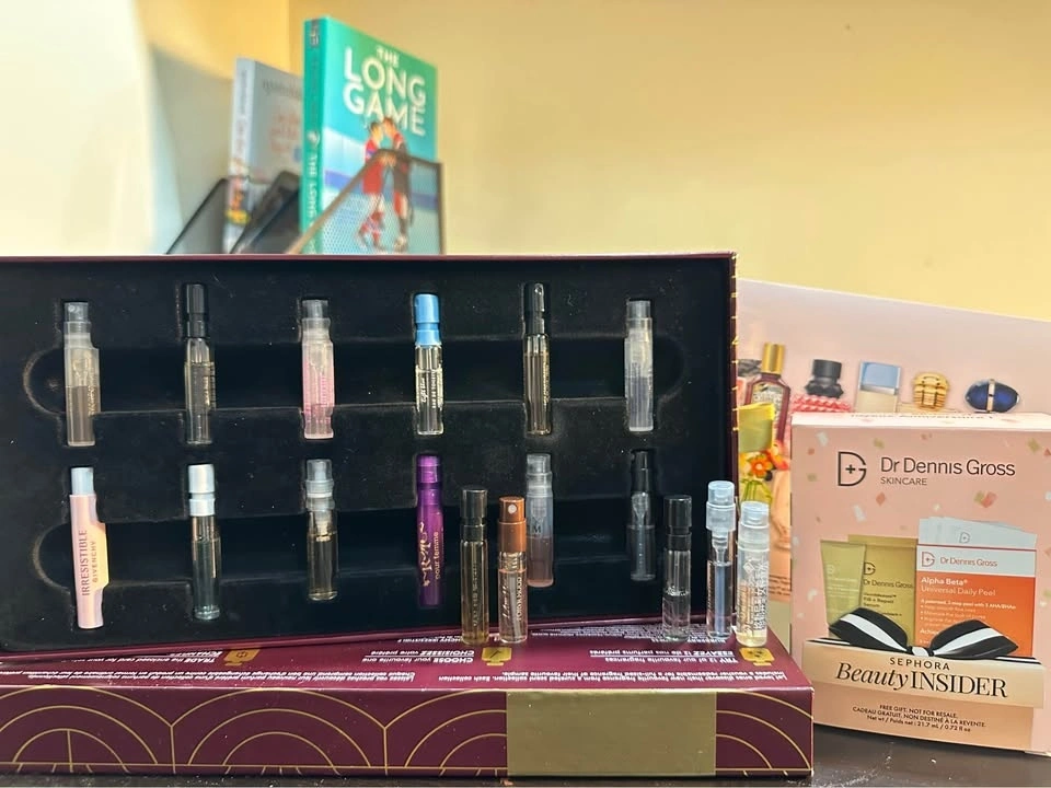 17 different perfume samples. Most of them are more than 80% except the Valentino one. Come with free Sephora birthday gift Dr Dennis Gross and 4 Essie Nail Polish