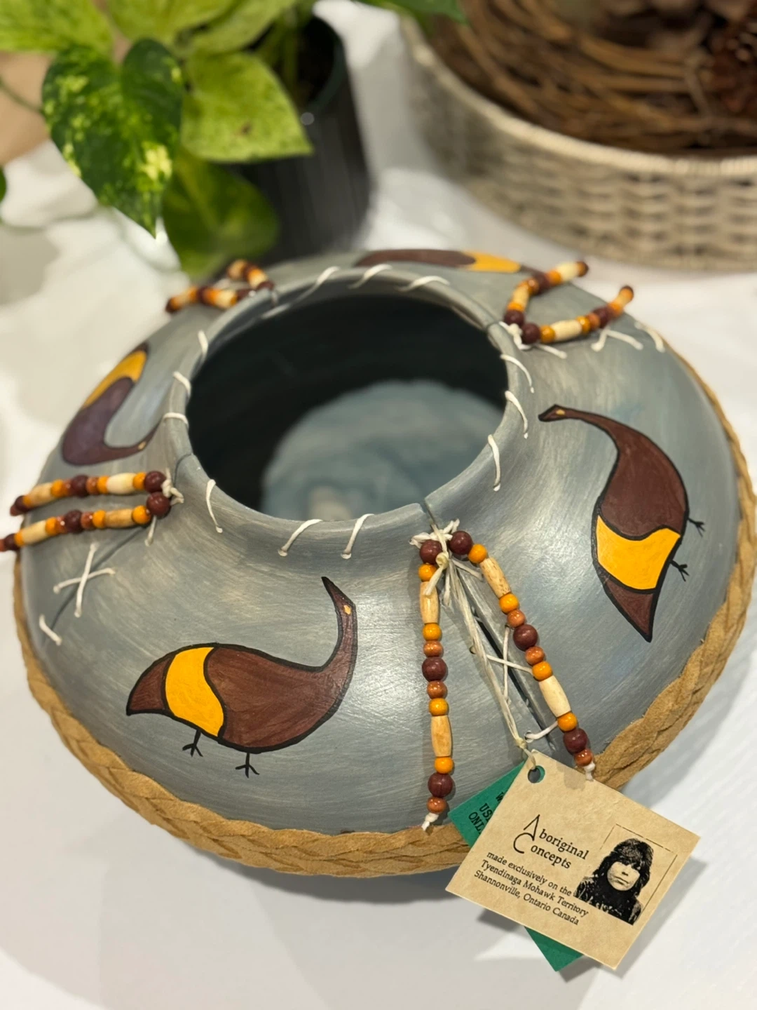1000+Unique, hand-made bowl from Aboriginal Concepts on the Tyendinaga Mohawk Territory in Ontario.The design concepts used by artist Barbara Green incorporates Indigenous heritage, customs, and beliefs. It's a beautiful piece to decorate your home with a touch of Indigenous artistry. Not for food use.