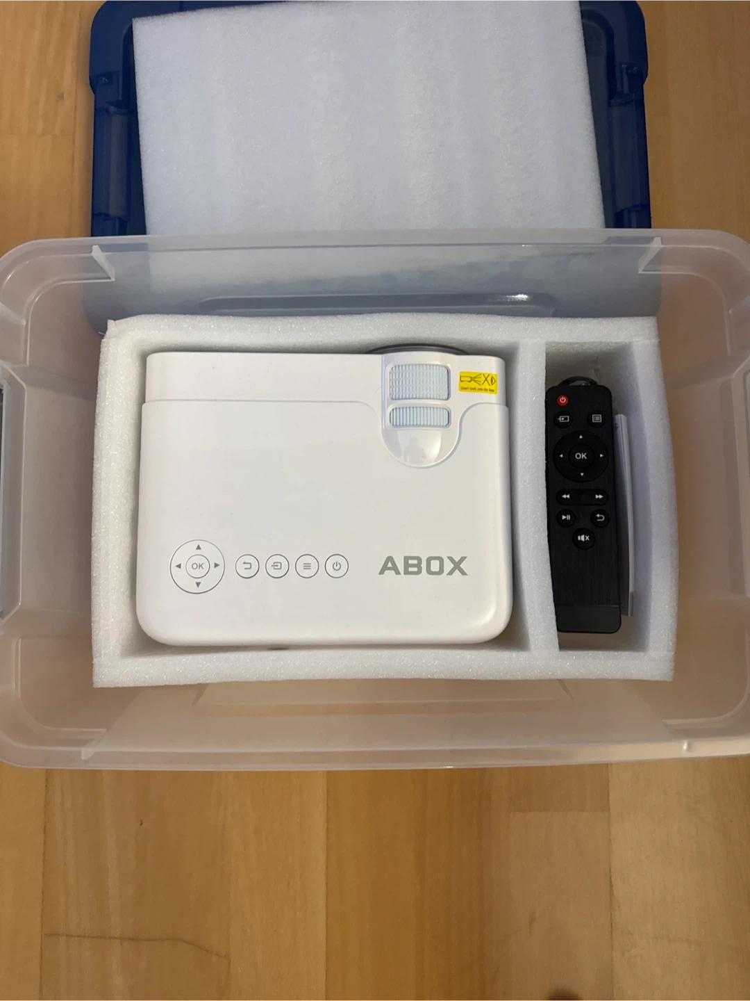 68Selling a white ABOX projector in great condition. It comes with a box and included components like the remote control. Perfect for movie nights or presentations! 1080p Connect to your phone!