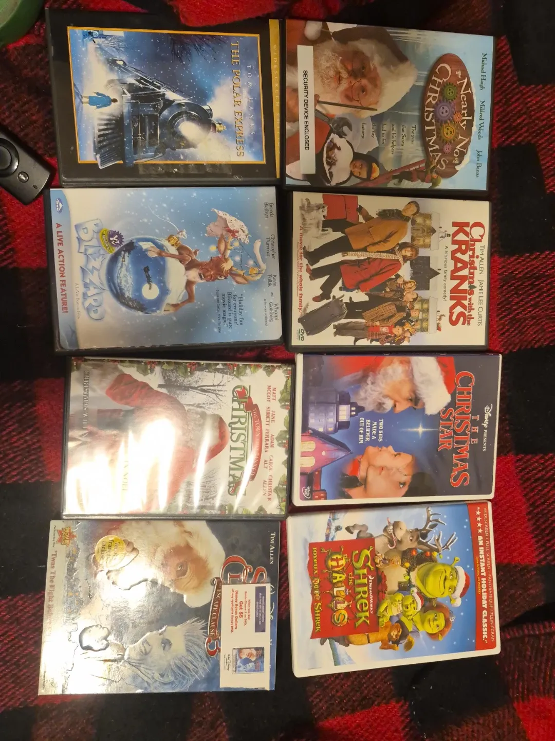 This is a collection of eight Christmas-themed DVDs. Titles include The Polar Express, Blizzard, Nearly No Christmas, Christmas with the Kranks, The Christmas Star, Christmas in Noel, The Santa Clause: Escape Clause, and Shrek the Halls. These are great for holiday movie nights!