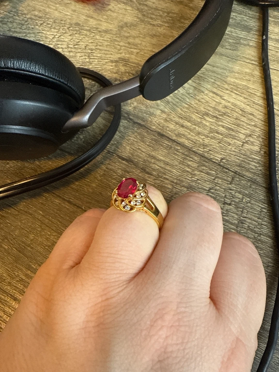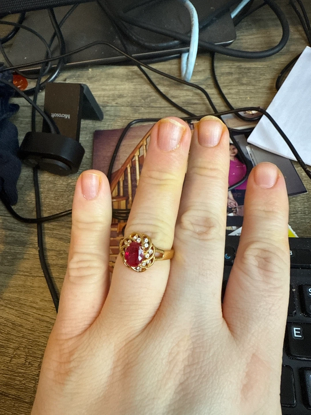 Gold Ring with Red Stone and Diamonds