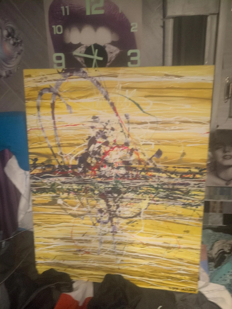 65Selling an abstract art painting signed by H. Saye, created on 2008 February 13. It's a unique piece that could add a pop of colour to your space
