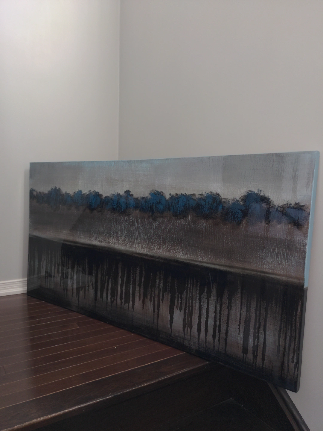 27Selling a unique abstract canvas wall art piece. It features a blend of grey, blue, and black tones, creating a calming yet striking visual. Perfect for adding a touch of modern art to any room!