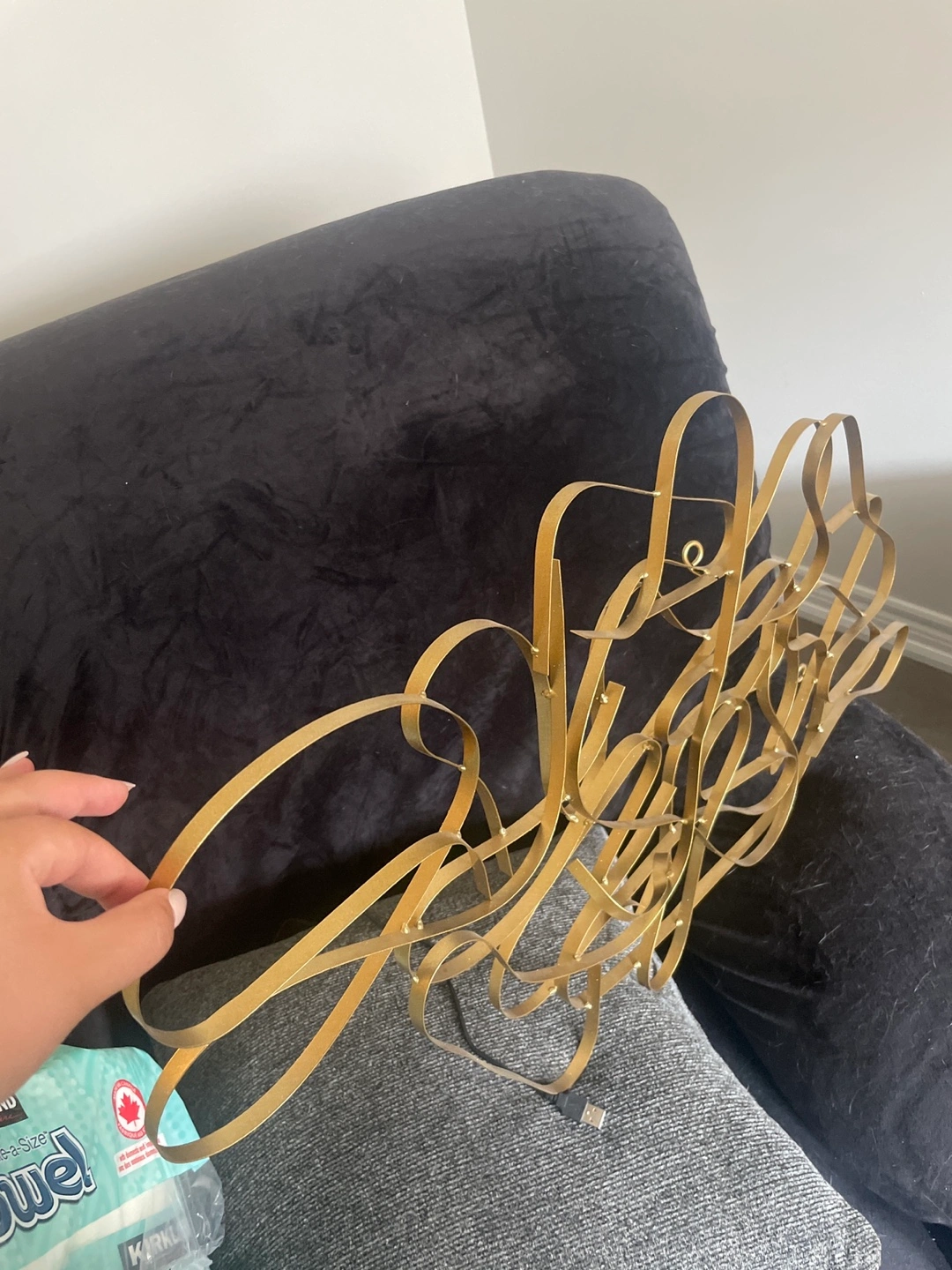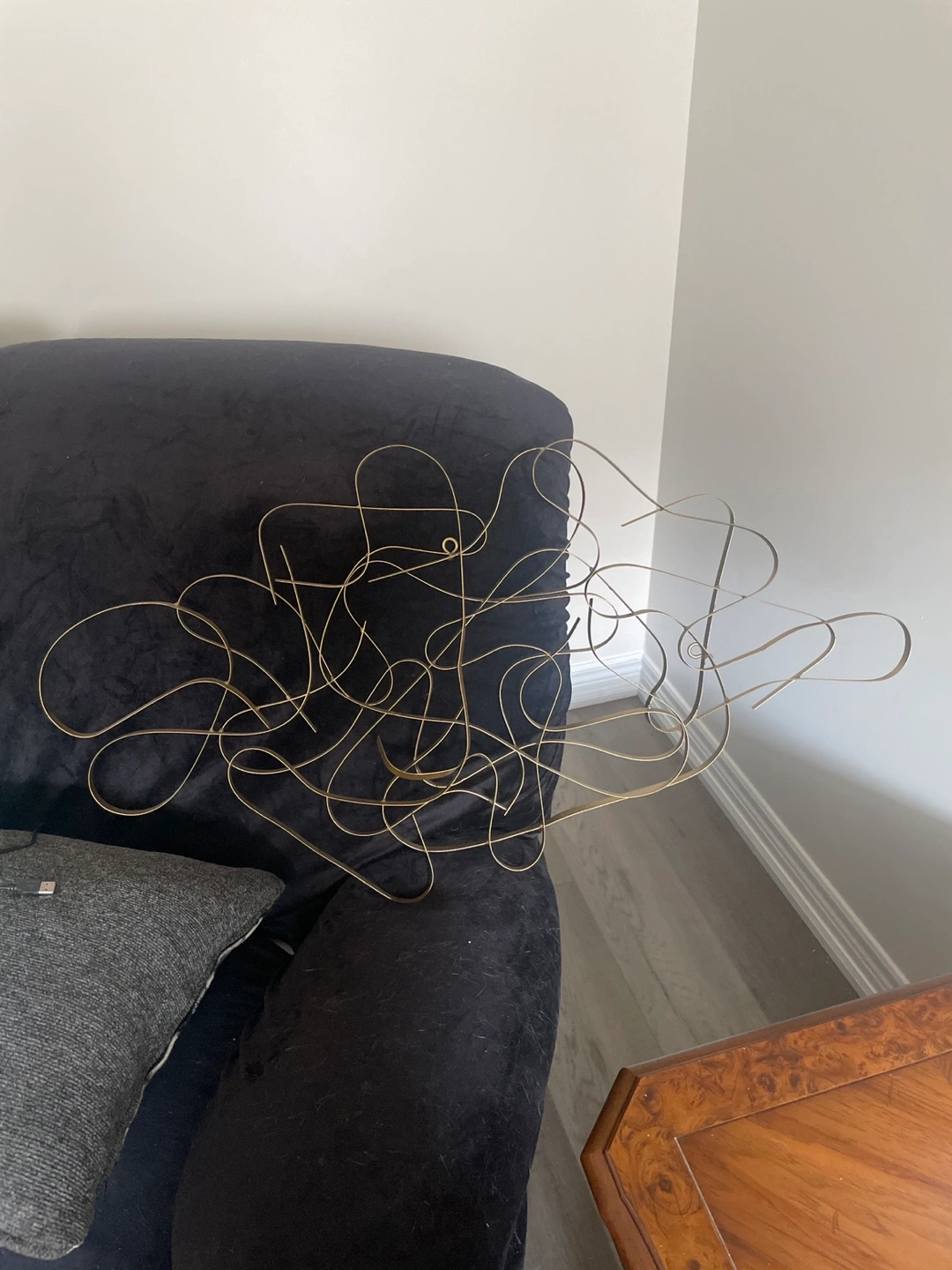 Selling a piece of abstract metal wall art in a gold colour from Homesense. It's a great way to add a modern touch to any room! The condition is like new.