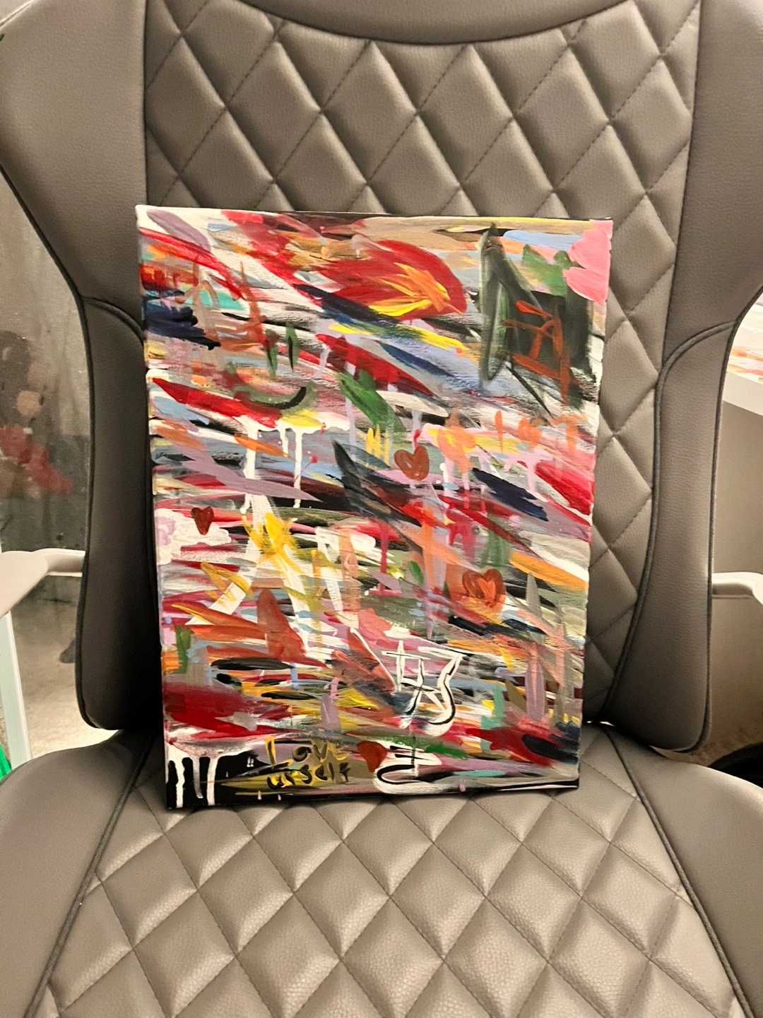I am a young artist who loves to paint! The canvas you see here is one of my favourites, I designed this one myself. This piece took me 2.5 hours. All my paintings are fully original and unique. Message me if you have any further questions!