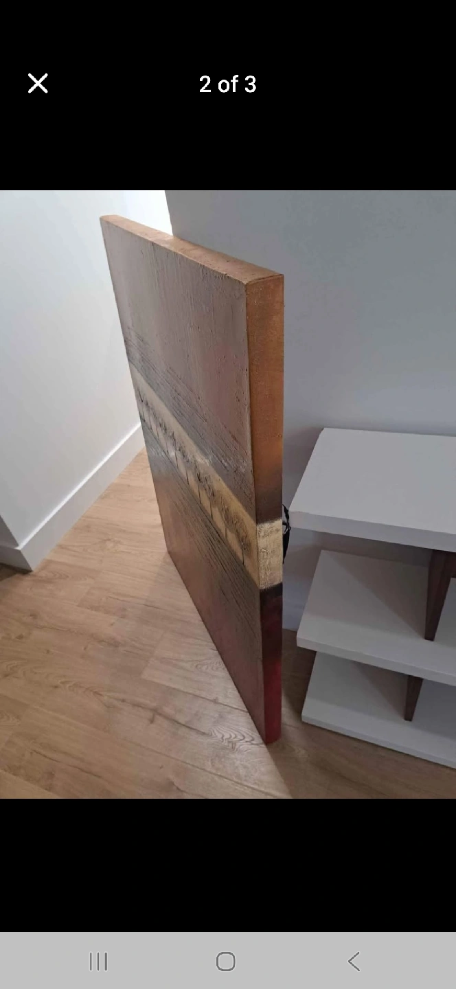 Selling an abstract painting. It features a textured surface and a unique design. The painting is in good condition and ready to enhance any room