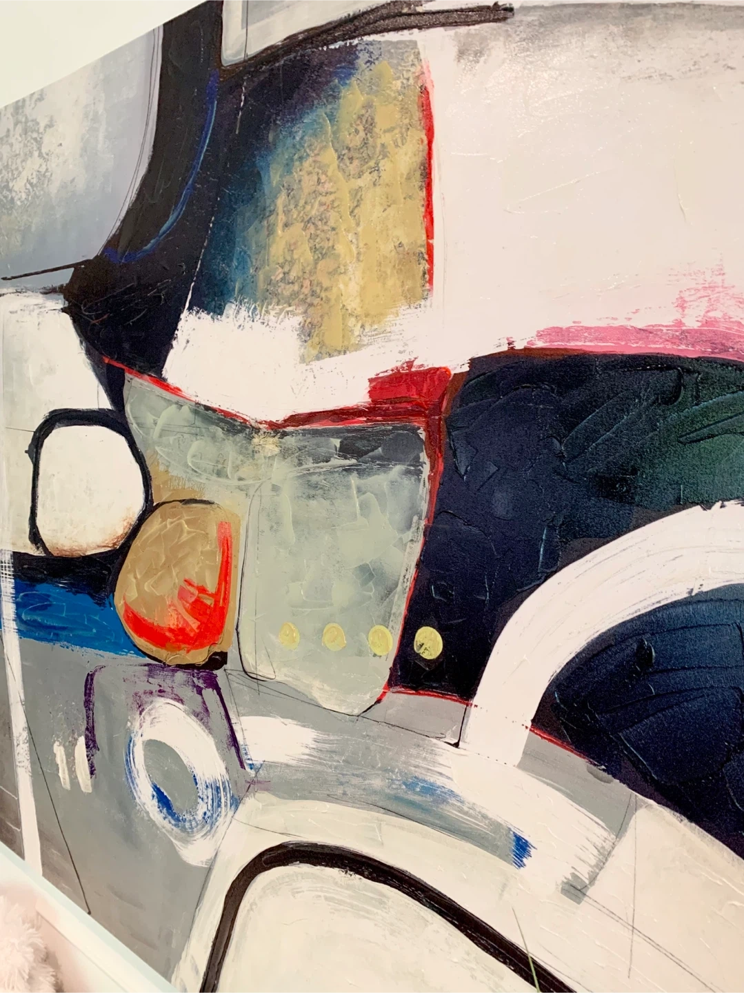 Selling an abstract painting on canvas. It's a beautiful piece that would look great in any home. The painting features a variety of colours and textures. It's in excellent condition and ready to hang -
