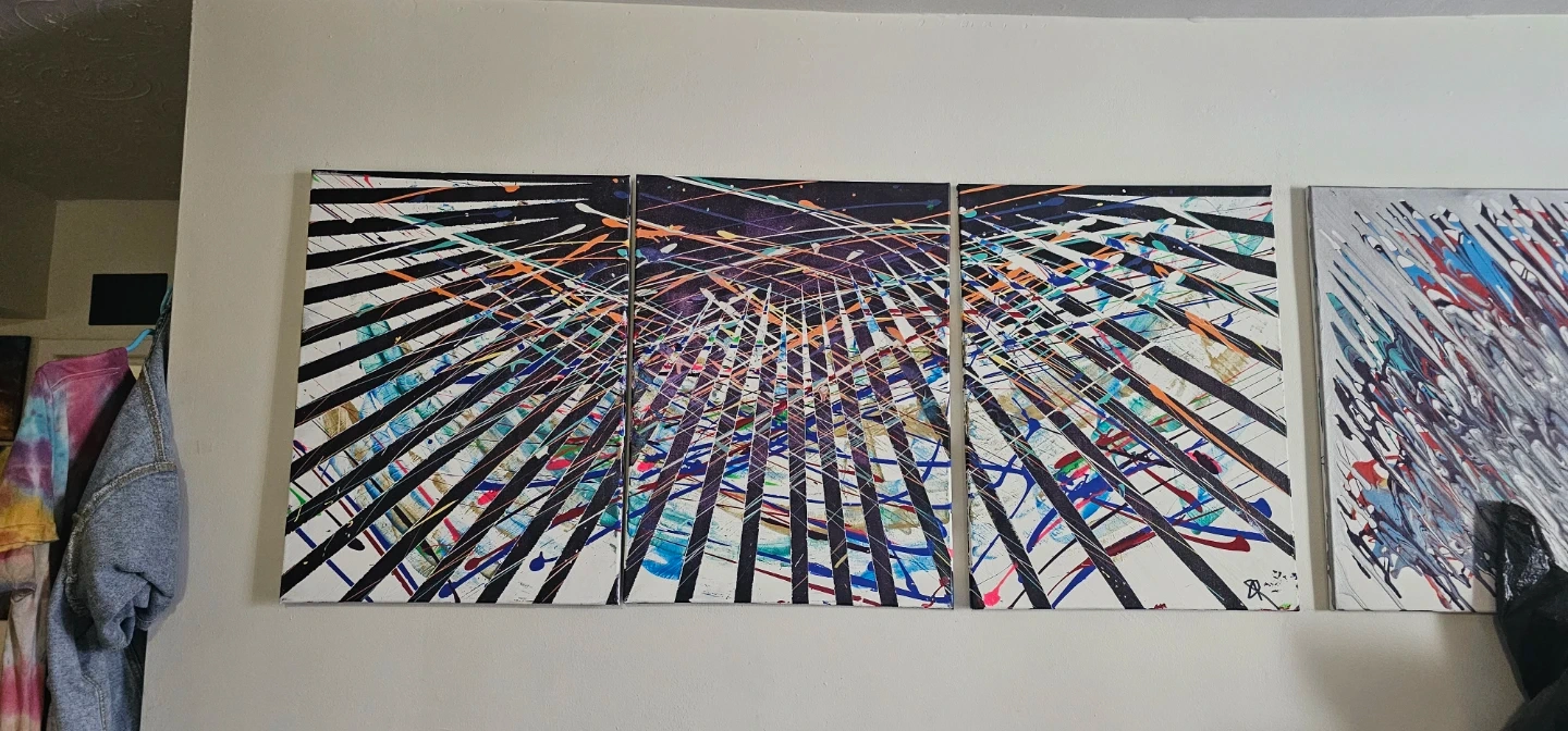 60Unique abstract triptych painting ready to brighten up your space! Features a vibrant array of colours and dynamic lines. A real statement piece for any room I do these myself, I also do custom work. contact me for more info. I stream my work at YouTube.com/@kogabro I'm always open to haggling too btw, I'm not hard to work with π