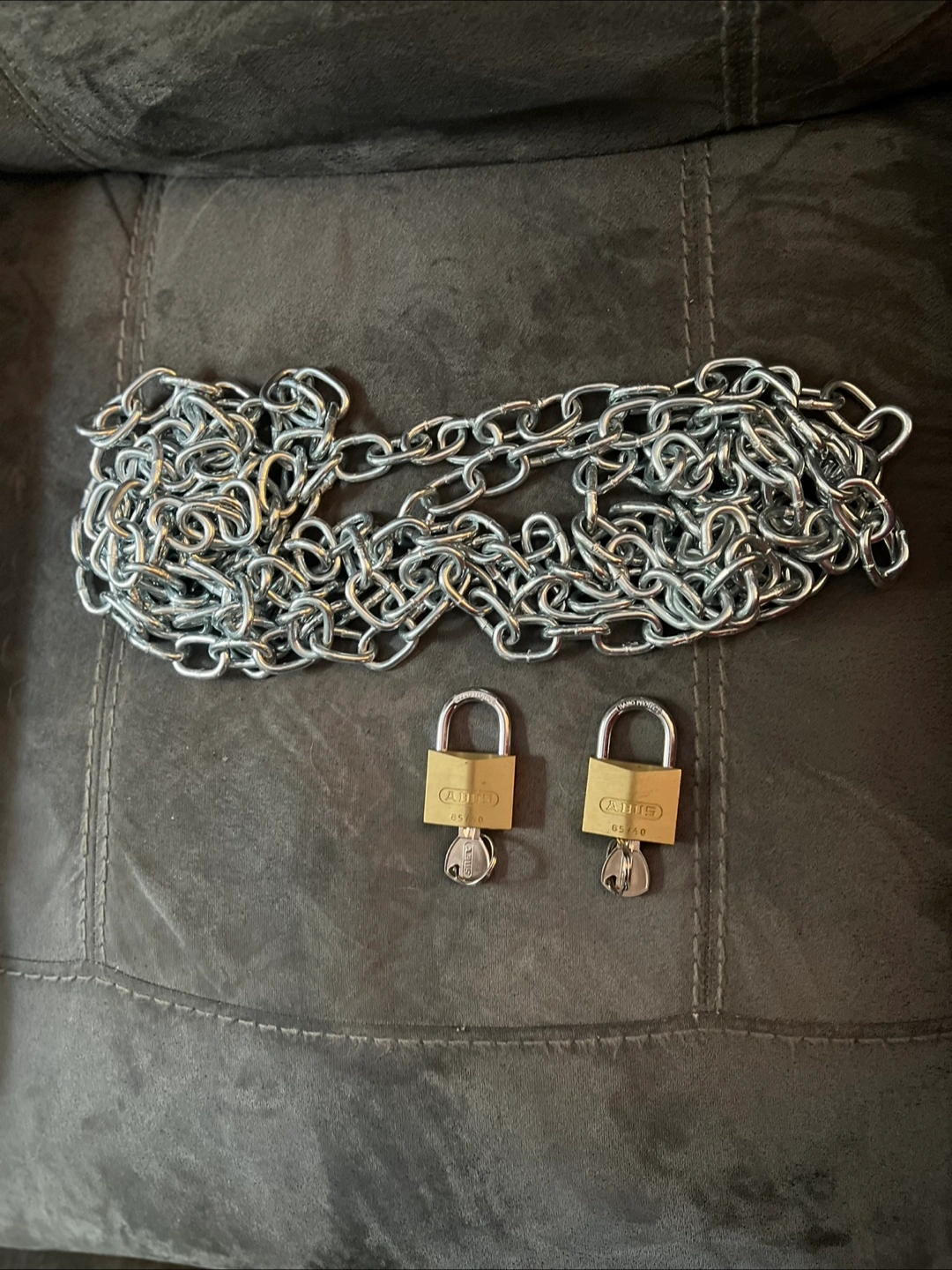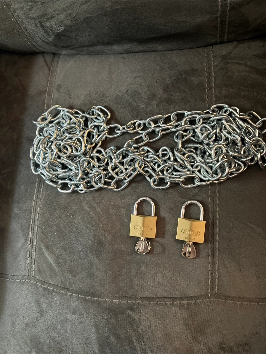33Selling an Abus chain with two padlocks. Great for securing your bike or other valuables. The padlocks come with their keys.one key has flashlight