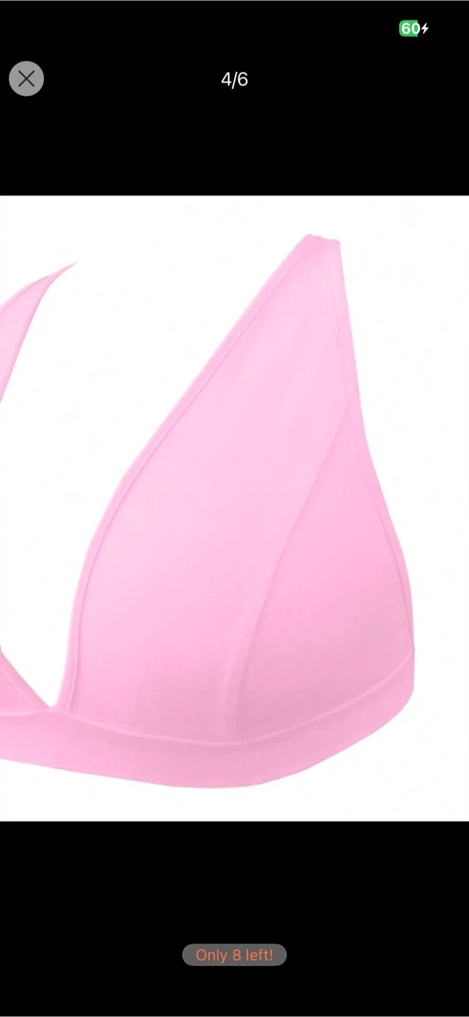 This pink two-piece set includes a V-neck sports bra and matching leggings. It's made from a comfortable, stretchy fabric. Great for workouts or lounging! Size M for both.