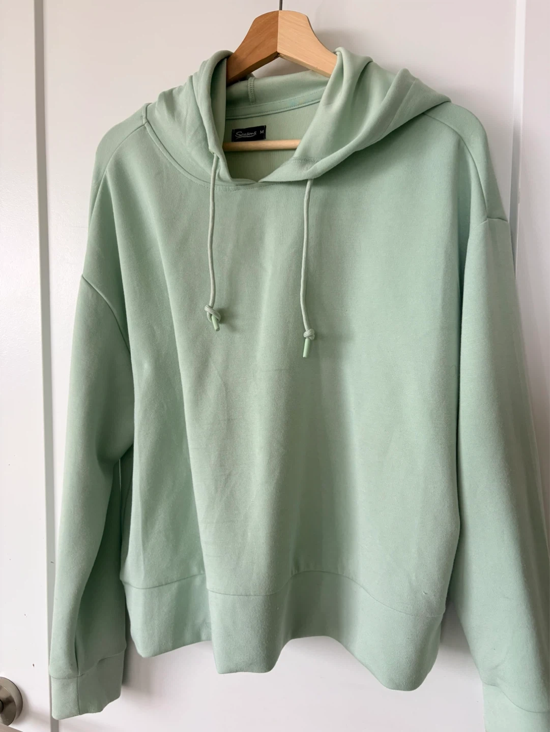 This Seasons hoodie is a comfortable light green colour and size medium. It's made of soft material, perfect for casual wear. A great staple for any wardrobe!