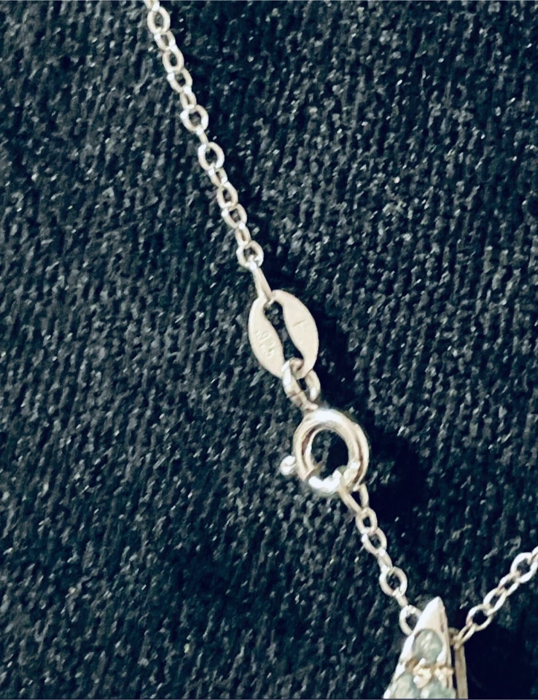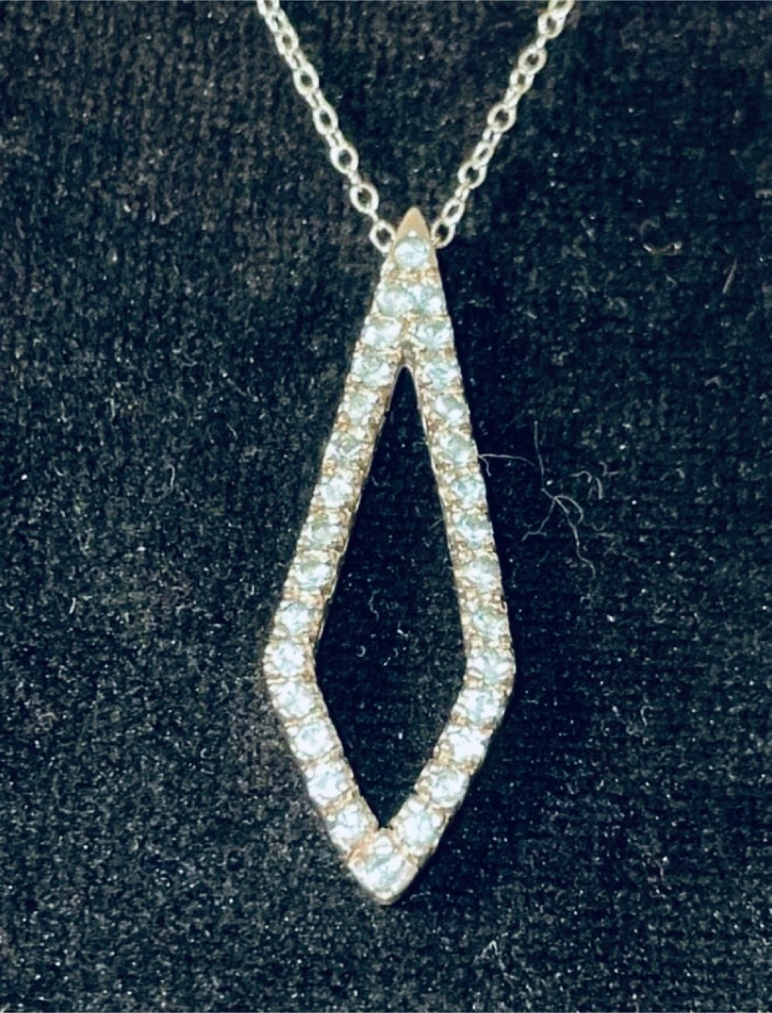 A 925 sterling silver necklace featuring a diamond-shaped pendant adorned with Genuine light blue Topaz stones.