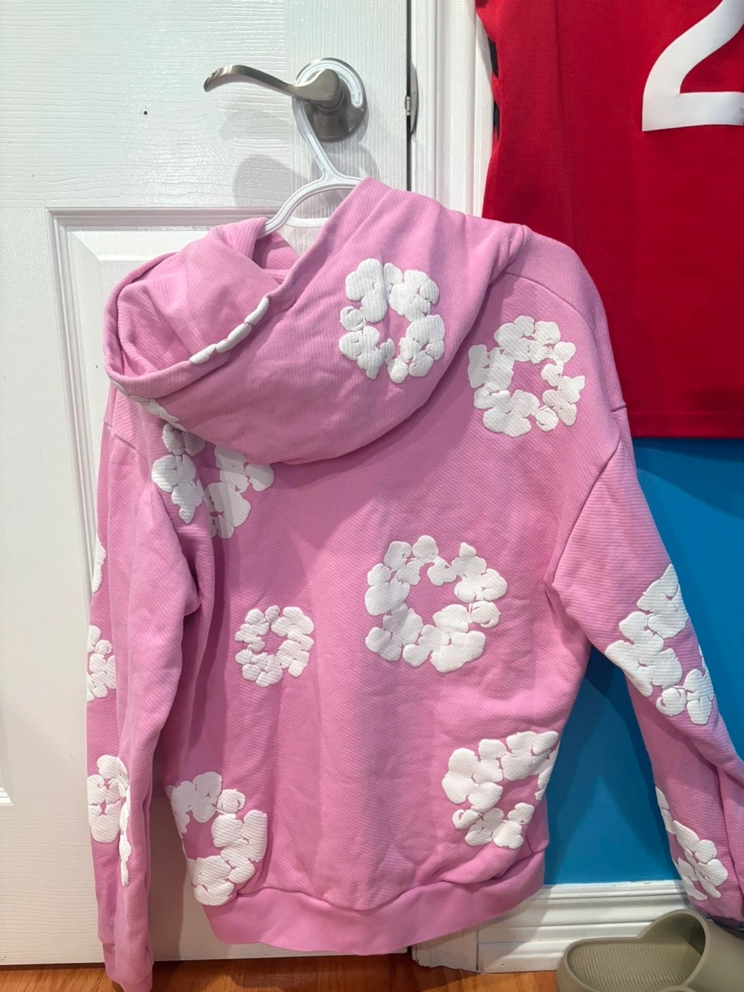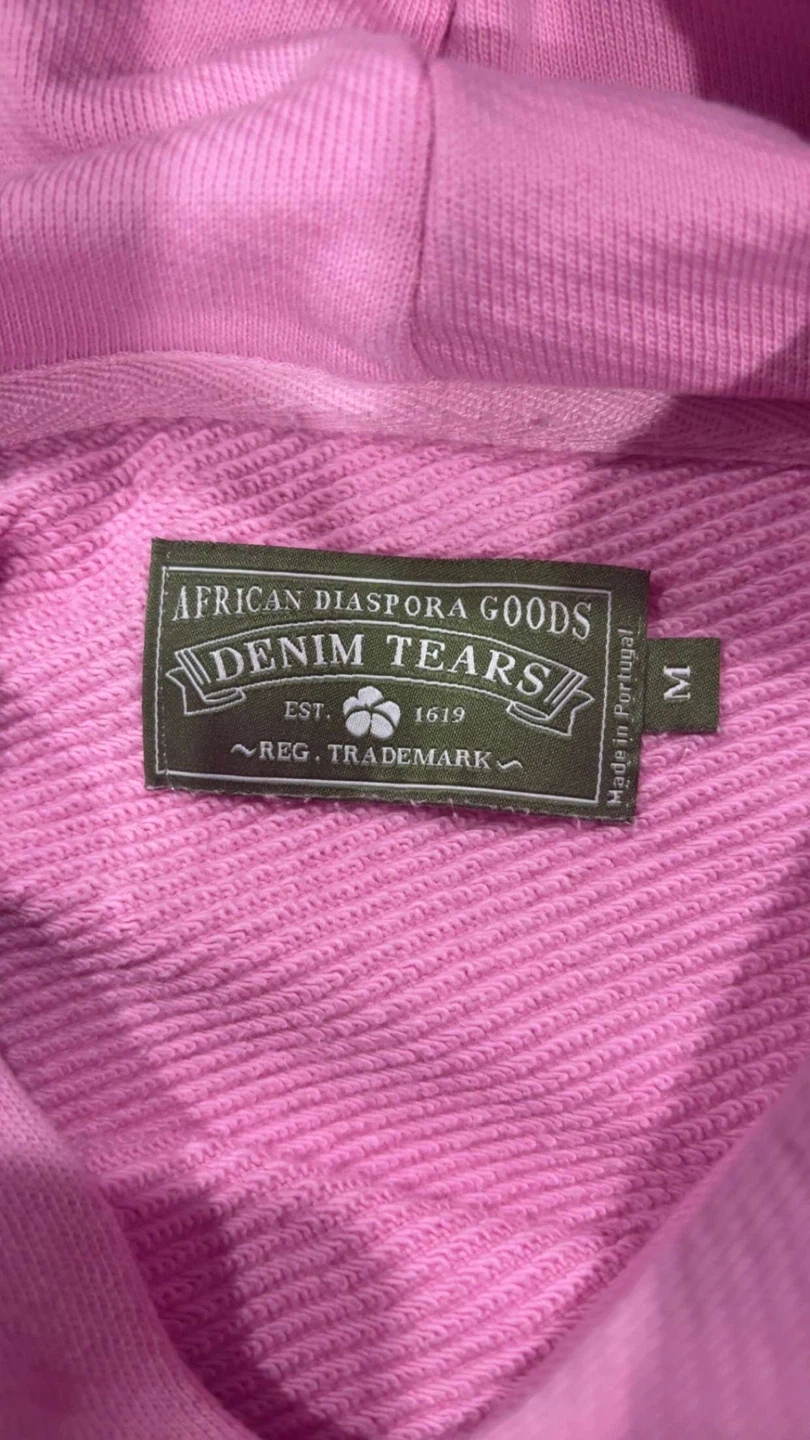 Denim Tears Pink Hoodie with White Floral Appliqué - Size M