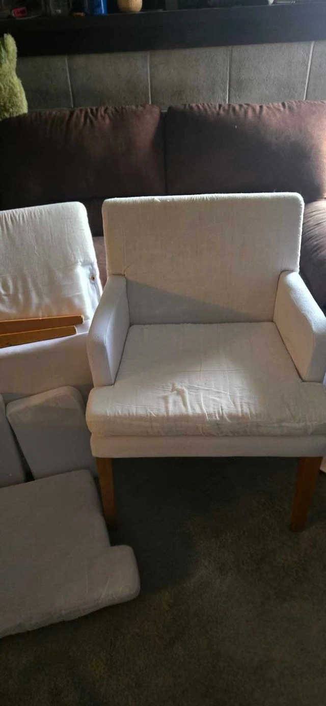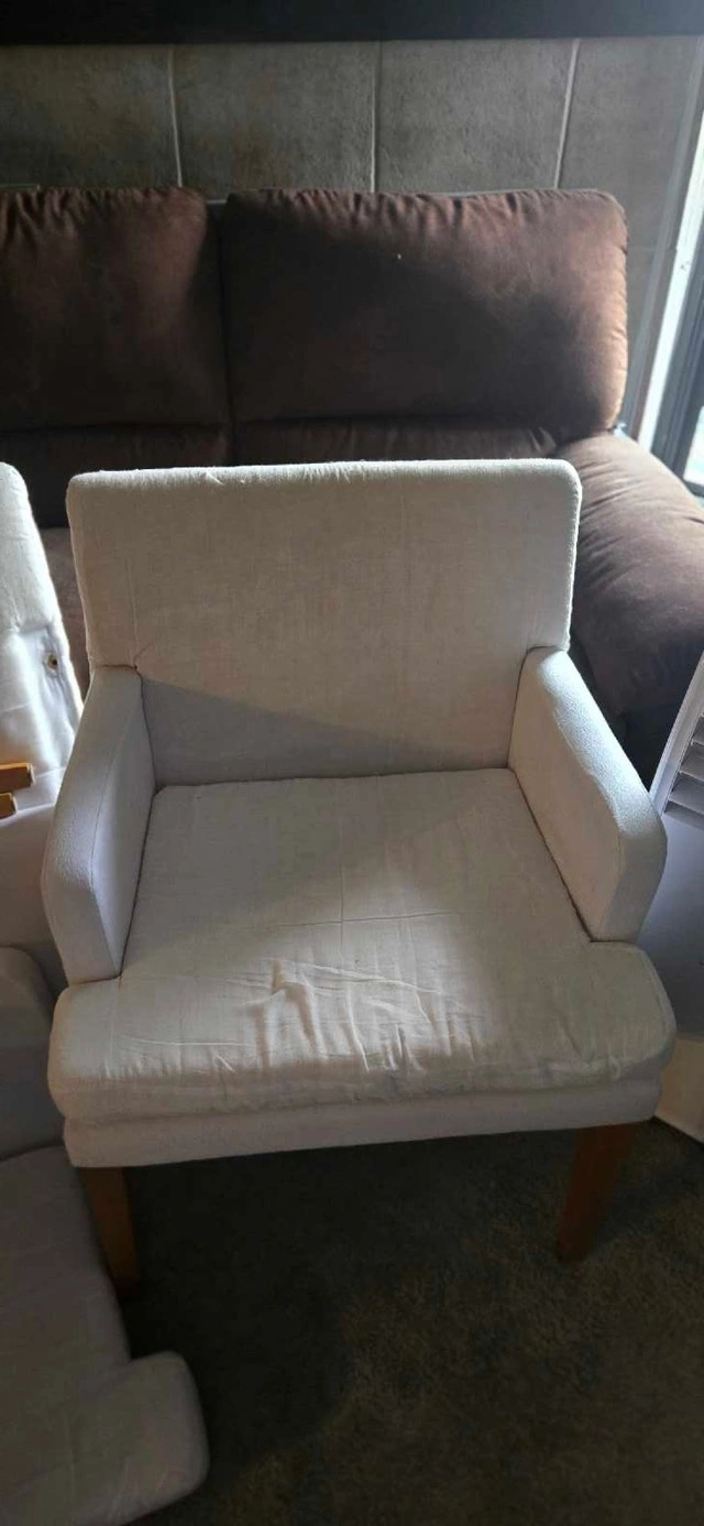 Living room set : big couch and Cozy creamy Boucle Armchair
