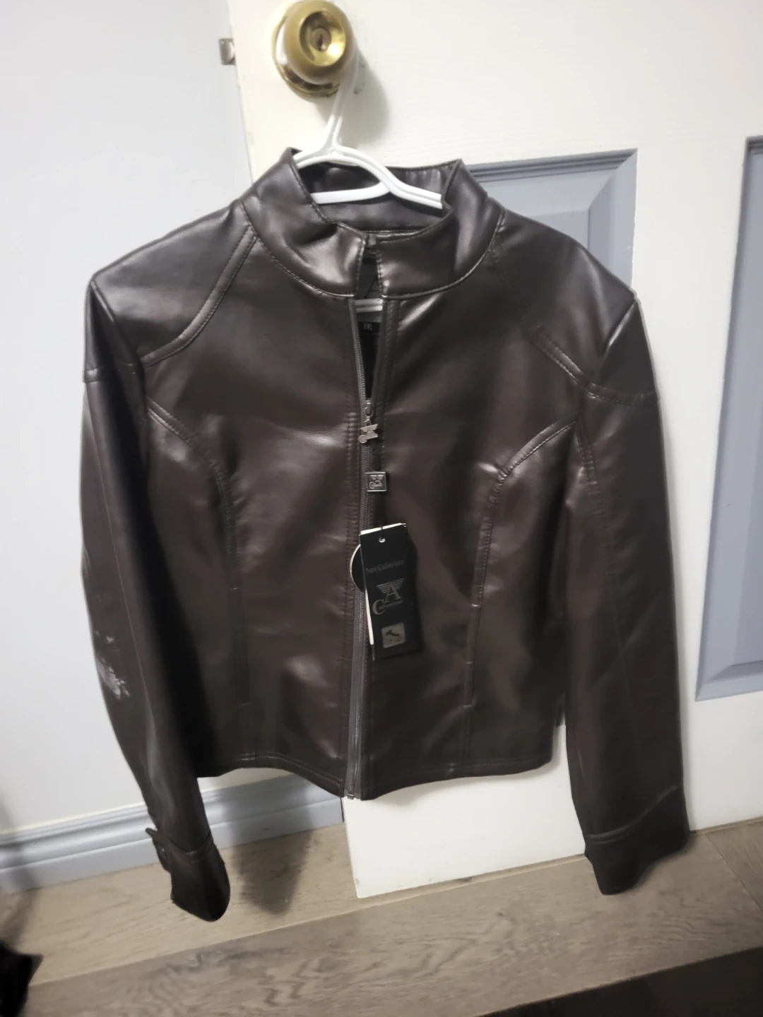 10Here's a stylish brown faux leather jacket from Ace Creation. It's in great condition and ready for a new home! Perfect for adding a bit of edge to your wardrobe.