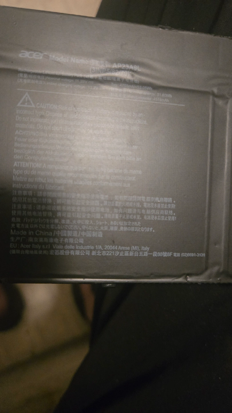 Selling an Acer AP23A9L laptop battery. It's in used condition, but still works. Model number is AP23A9L. from an acer cb315-4h have parts sitting around I need to get rid of