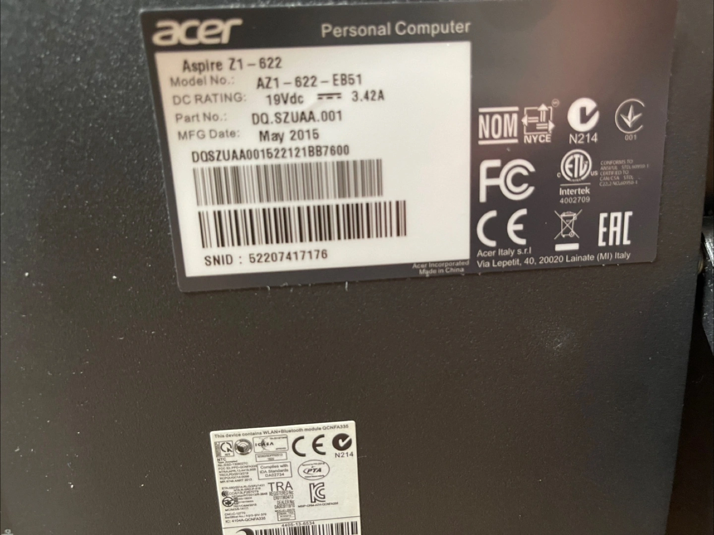 Selling an Acer Aspire Z1-622 all-in-one personal computer. It's in good condition and ready for a new home! The manufacturing date is May 2015