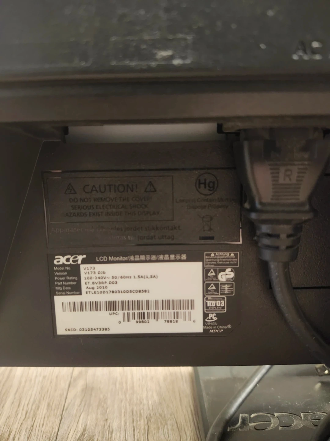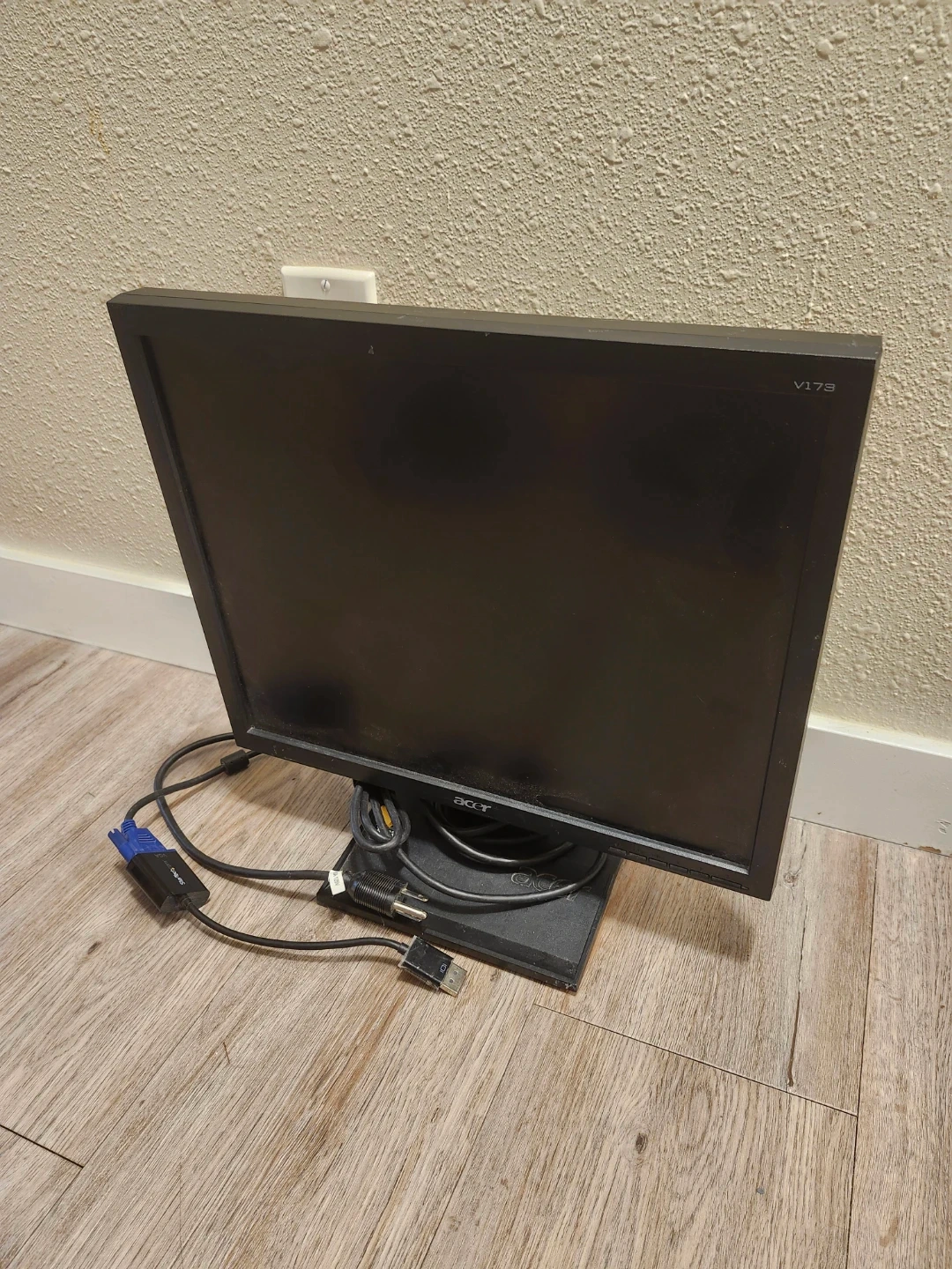 37Selling an Acer V173 LCD monitor. It's a 14½-inch screen and is in used condition. Perfect for a home office or as a secondary display