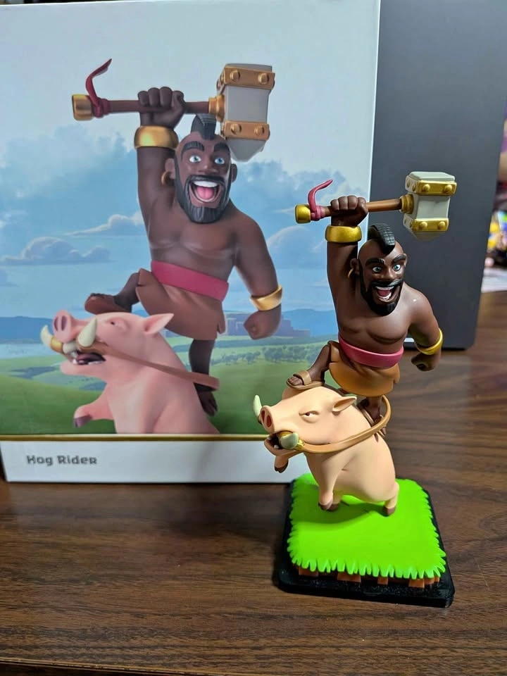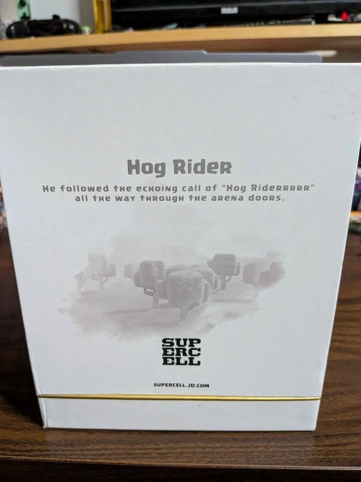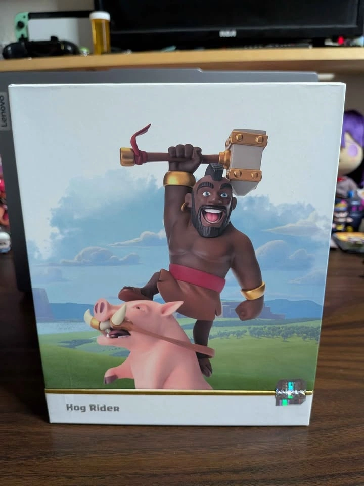 It falls off its stand if you move it too much and there's a mark behind the hog rider on the plate, but it's in good condition. If you're a fan of the Hog Rider or Clash of Clans or Clash Royale, this is a great figure to add to your collection.