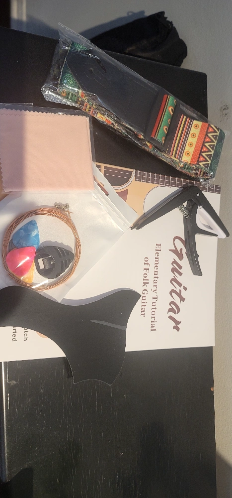 Selling a brand new acoustic guitar . It comes with a case, guitar strap, a few picks, extra strings, a capo, a cleaning cloth, and a guitar lesson book! Perfect for someone just starting out or looking for a practice guitar