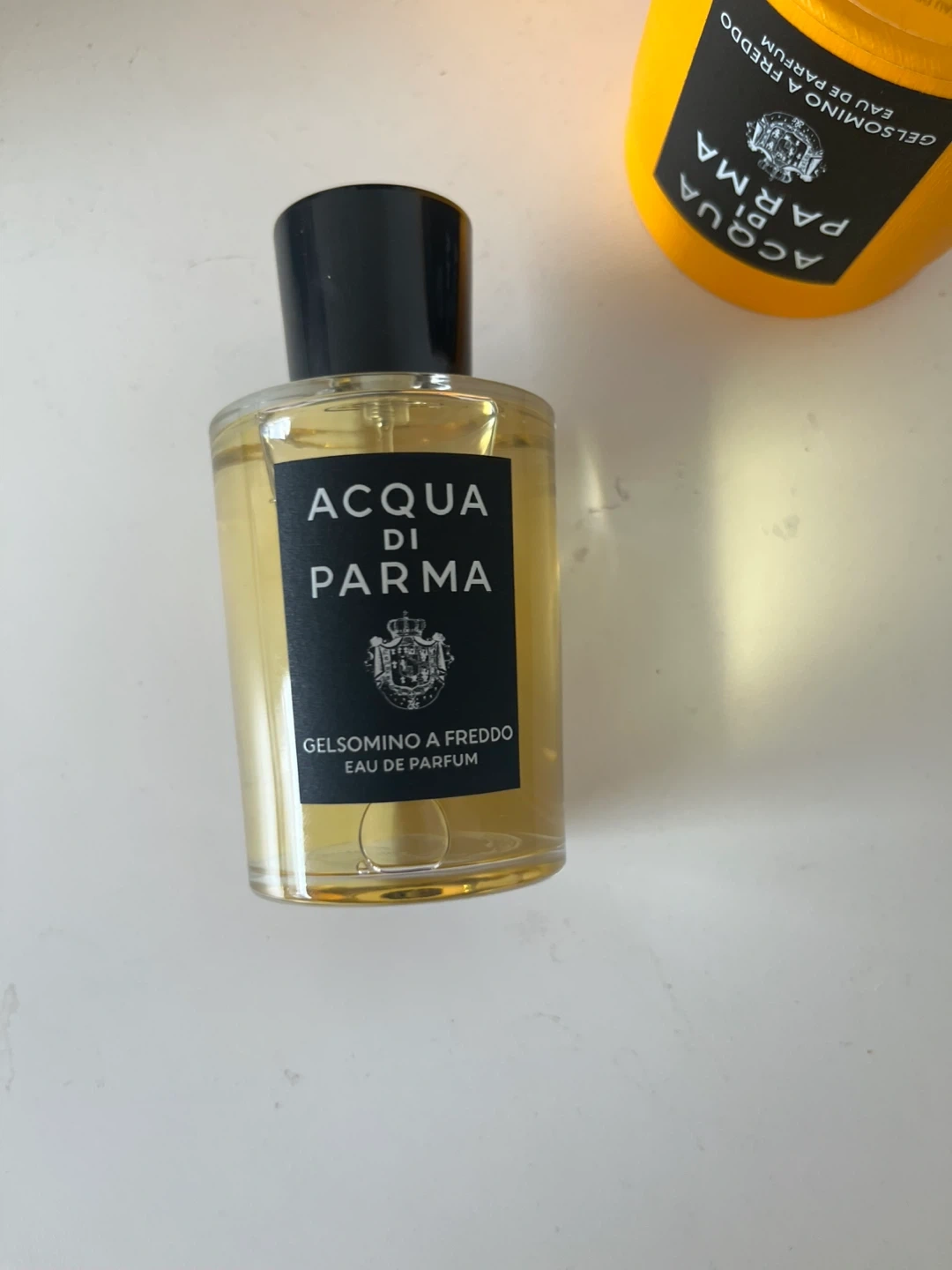Selling a bottle of Acqua di Parma Gelsomino a Freddo Eau de Parfum. It's a 100ml bottle in its original box. The box is in a sunny yellow colour. Perfect for anyone who loves a refreshing scent! Selling 50$ under retail because I sprayed it twice.