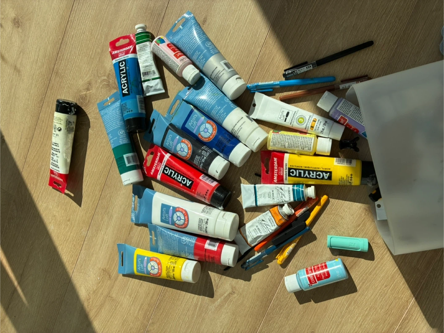104Selling a variety of acrylic and oil paints! There are tubes from Amsterdam, Artist's Loft, and other brands. Great for anyone looking to expand their art supplies